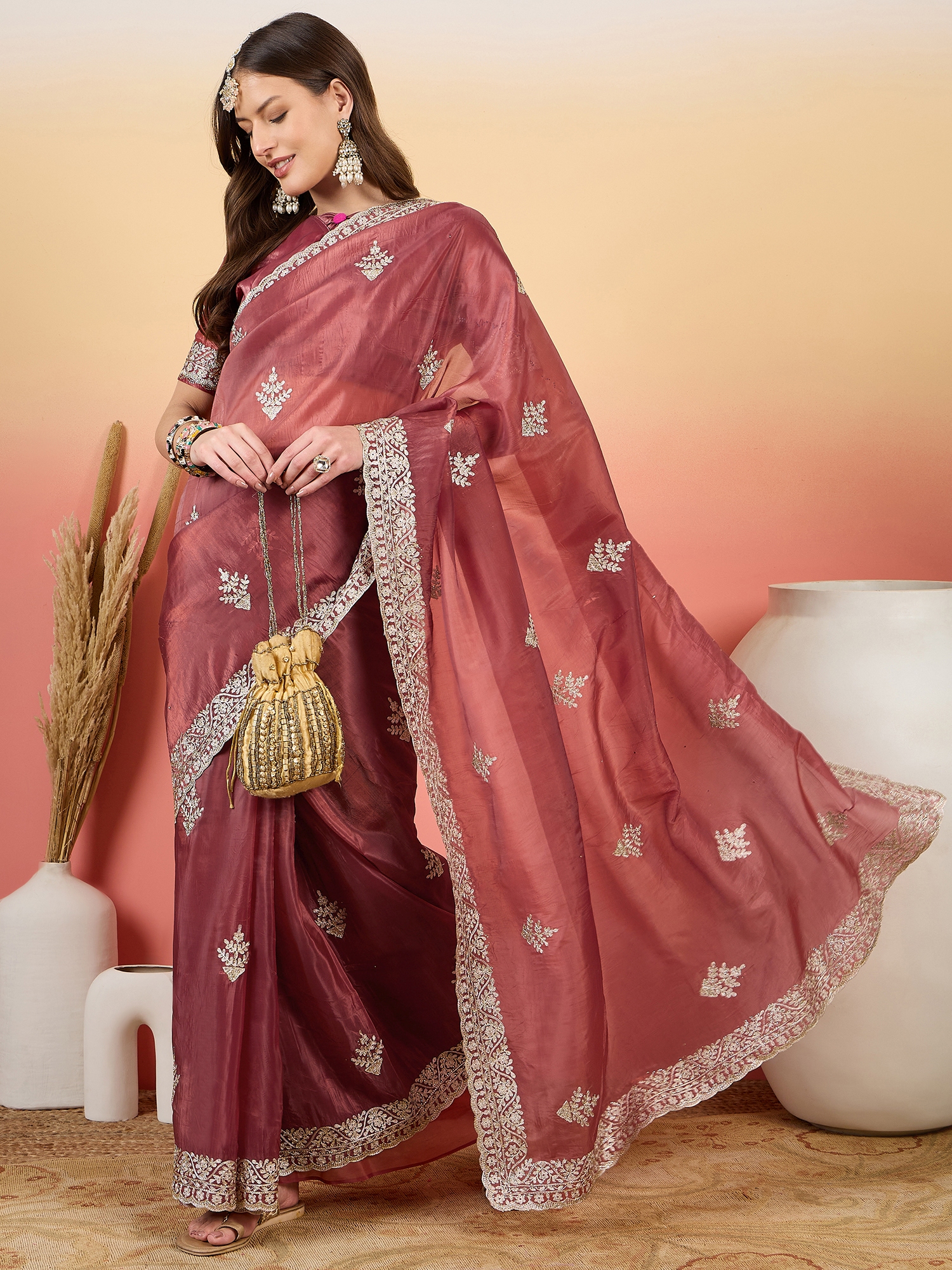 • Saree Fabric-Gold Crush ,Blouse Fabric-Gold Crush