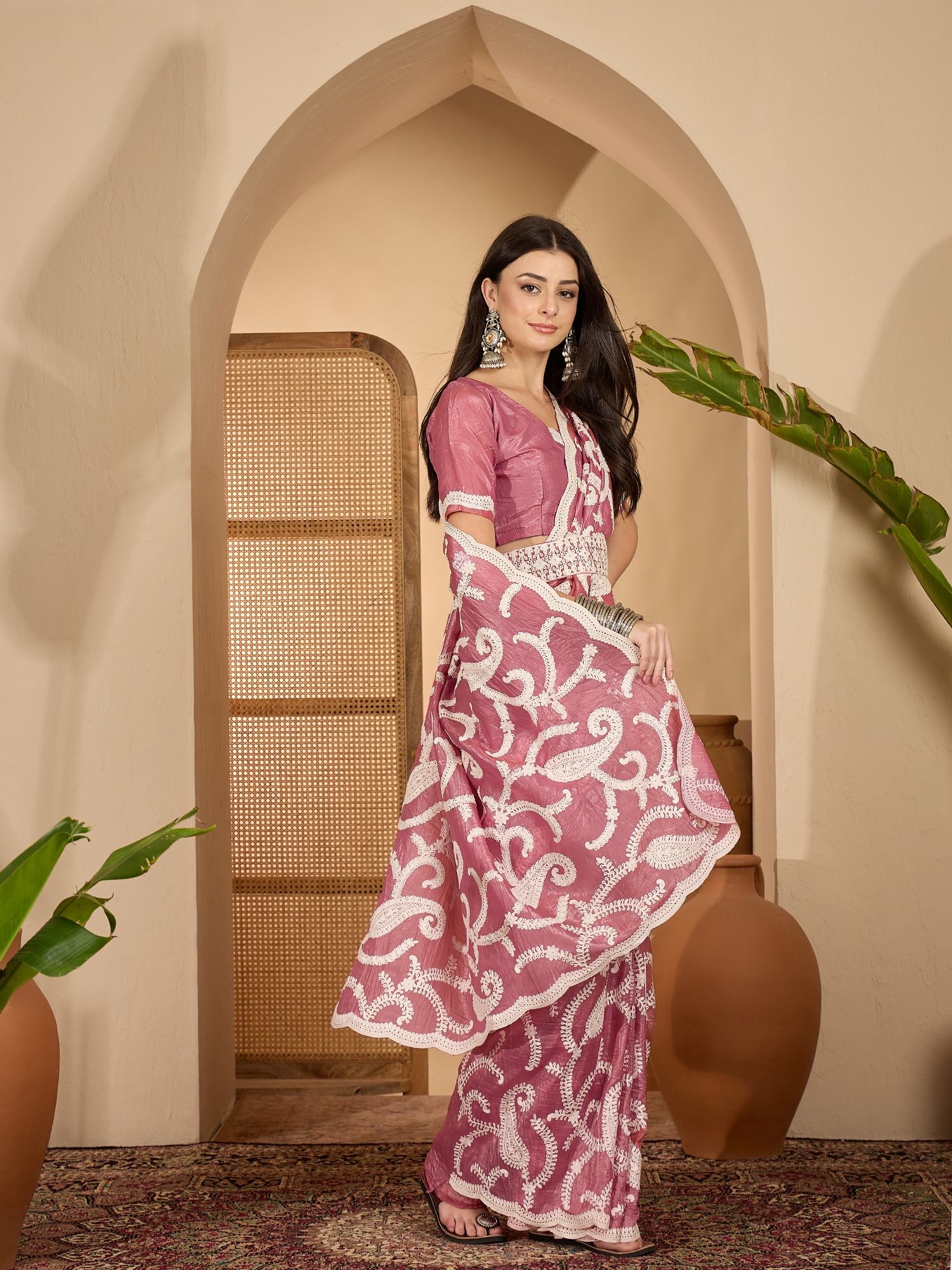 AASTHA FASHION Fashion Dream Womens Pink Gold Crush Saree | Soft & Elegant Traditional Wear