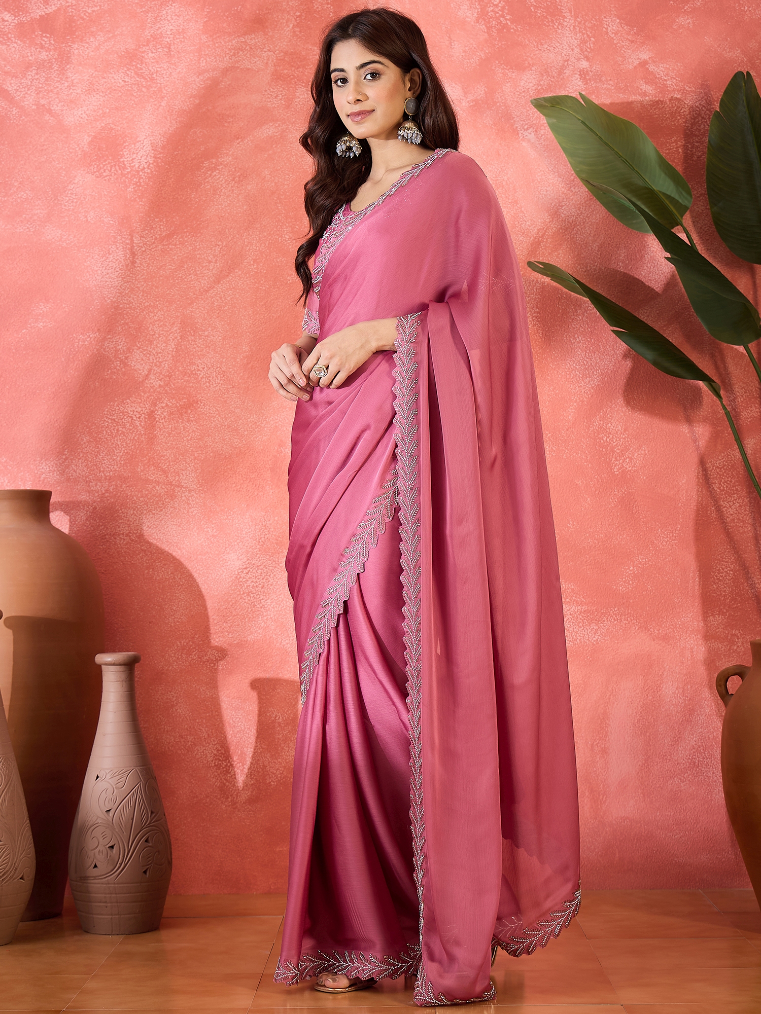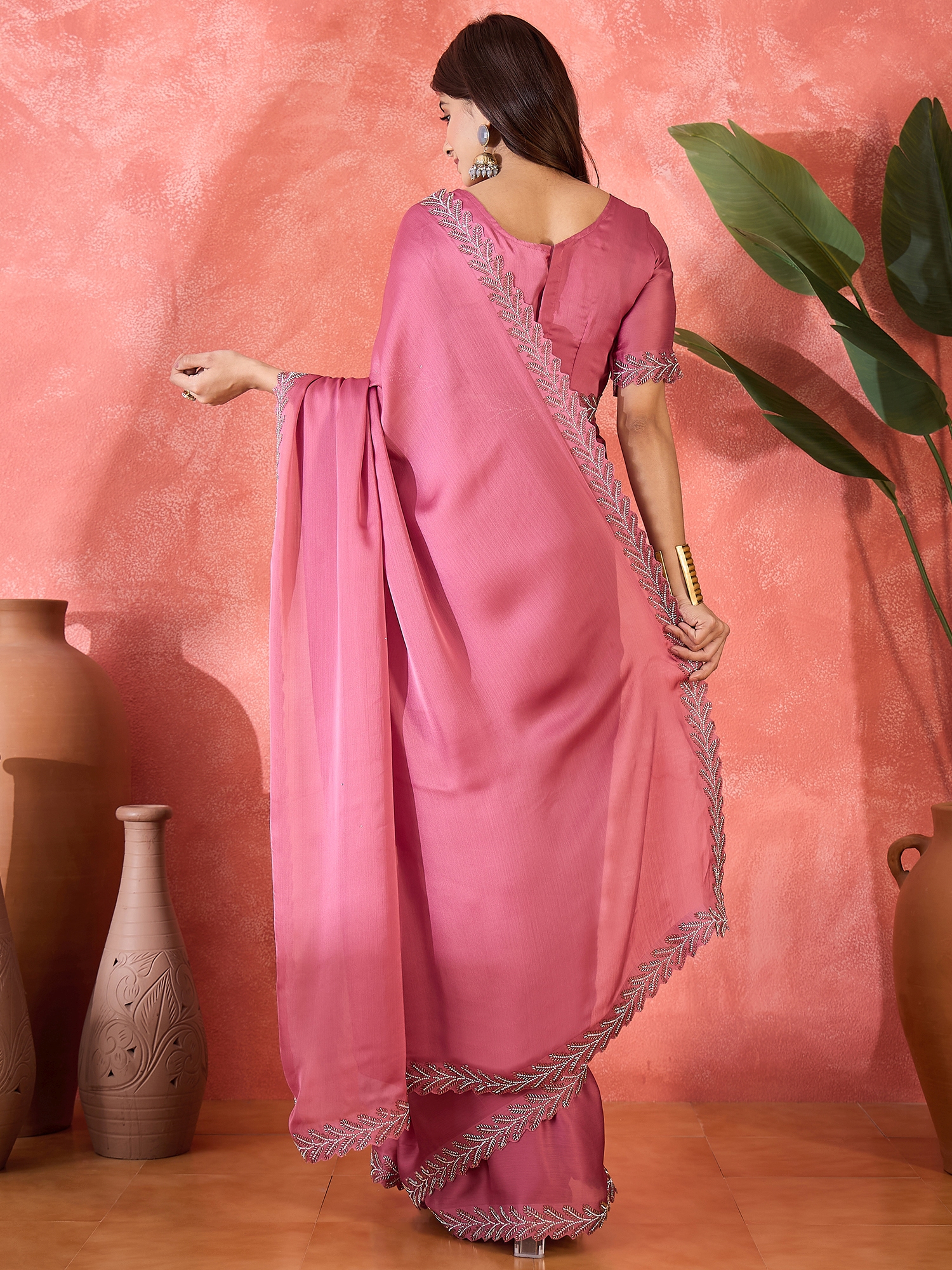AASTHA FASHION Fashion Dream Womens Pink Heavy Satin Chiffon Saree | Soft & Elegant Traditional Wear