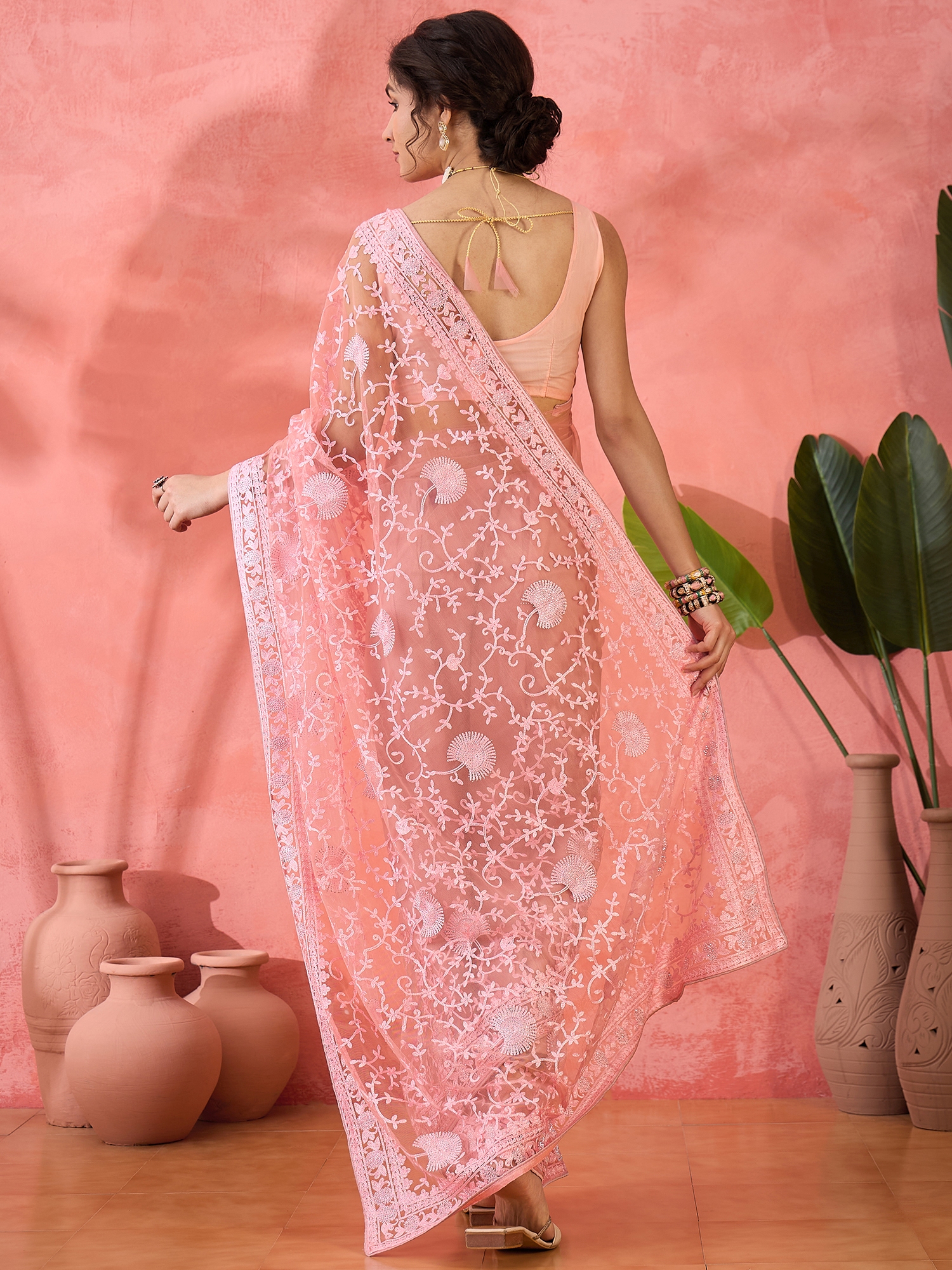 AASTHA FASHION Fashion Dream Womens Pink Net Saree | Soft & Elegant Traditional Wear