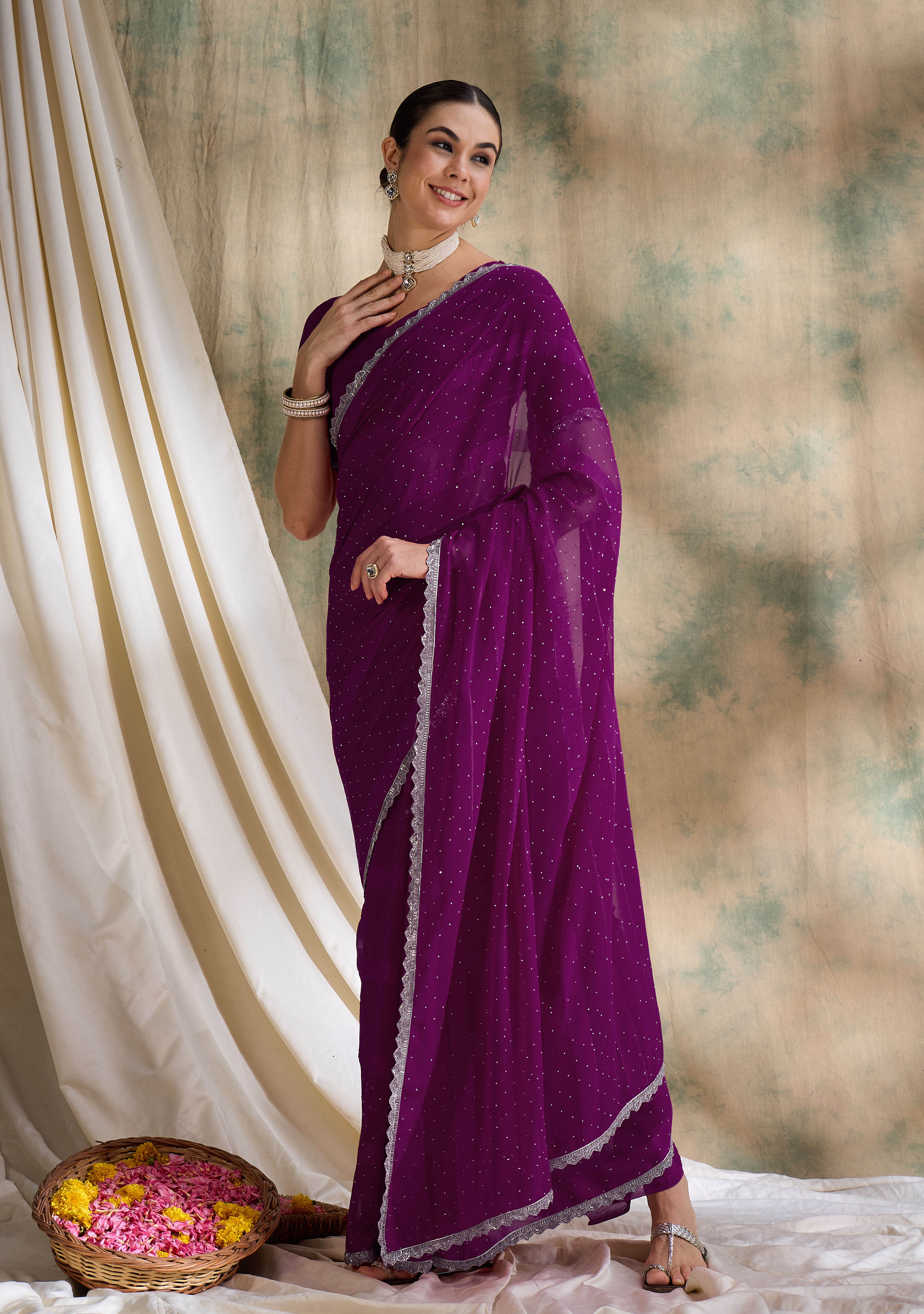 AASTHA FASHION Fashion Dream Womens Purple Vichitra Silk Saree | Soft & Elegant Traditional Wear