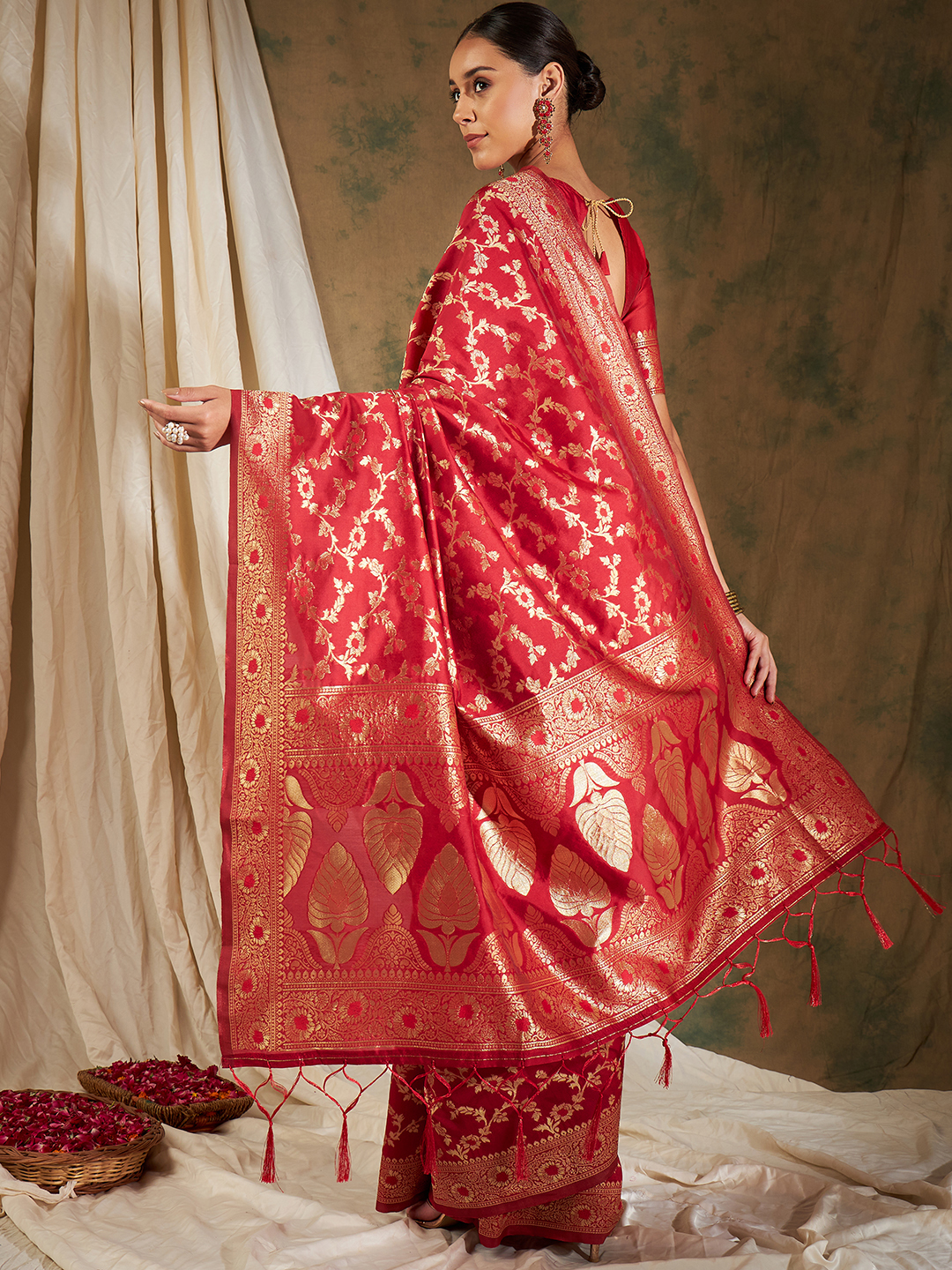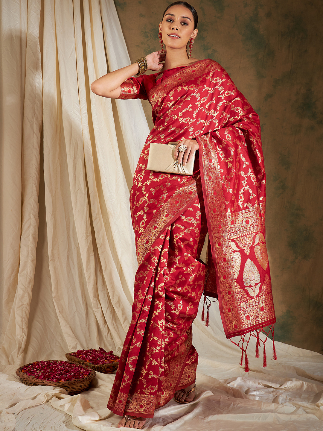 AASTHA FASHION Fashion Dream Womens RED Banarasi Silk Saree | Soft & Elegant Traditional Wear