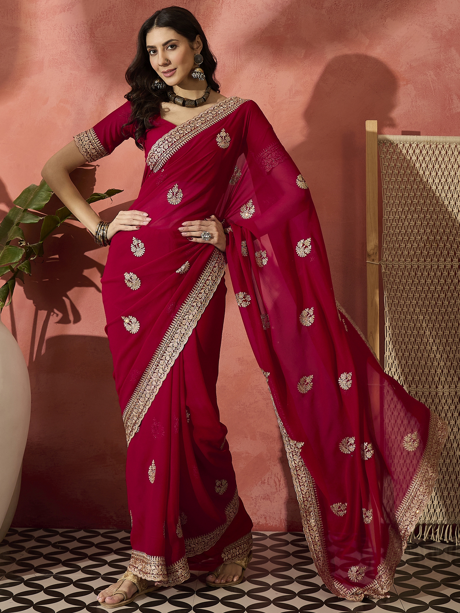 • Saree Fabric-Georgette ,Blouse Fabric-Georgette