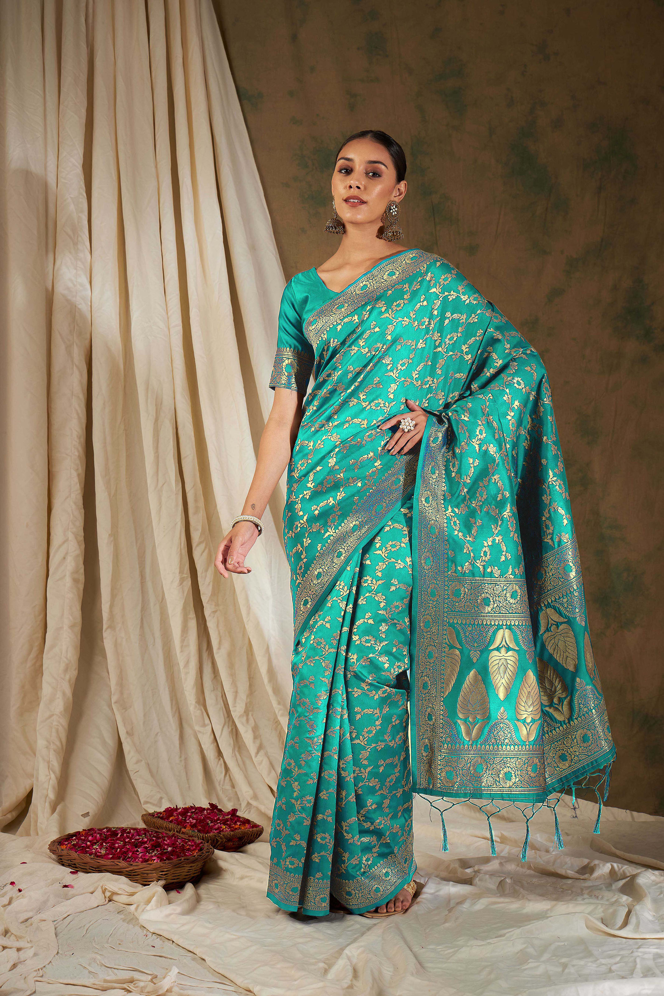 • Saree Fabric-Banarasi Silk ,Blouse Fabric-Banarasi Silk