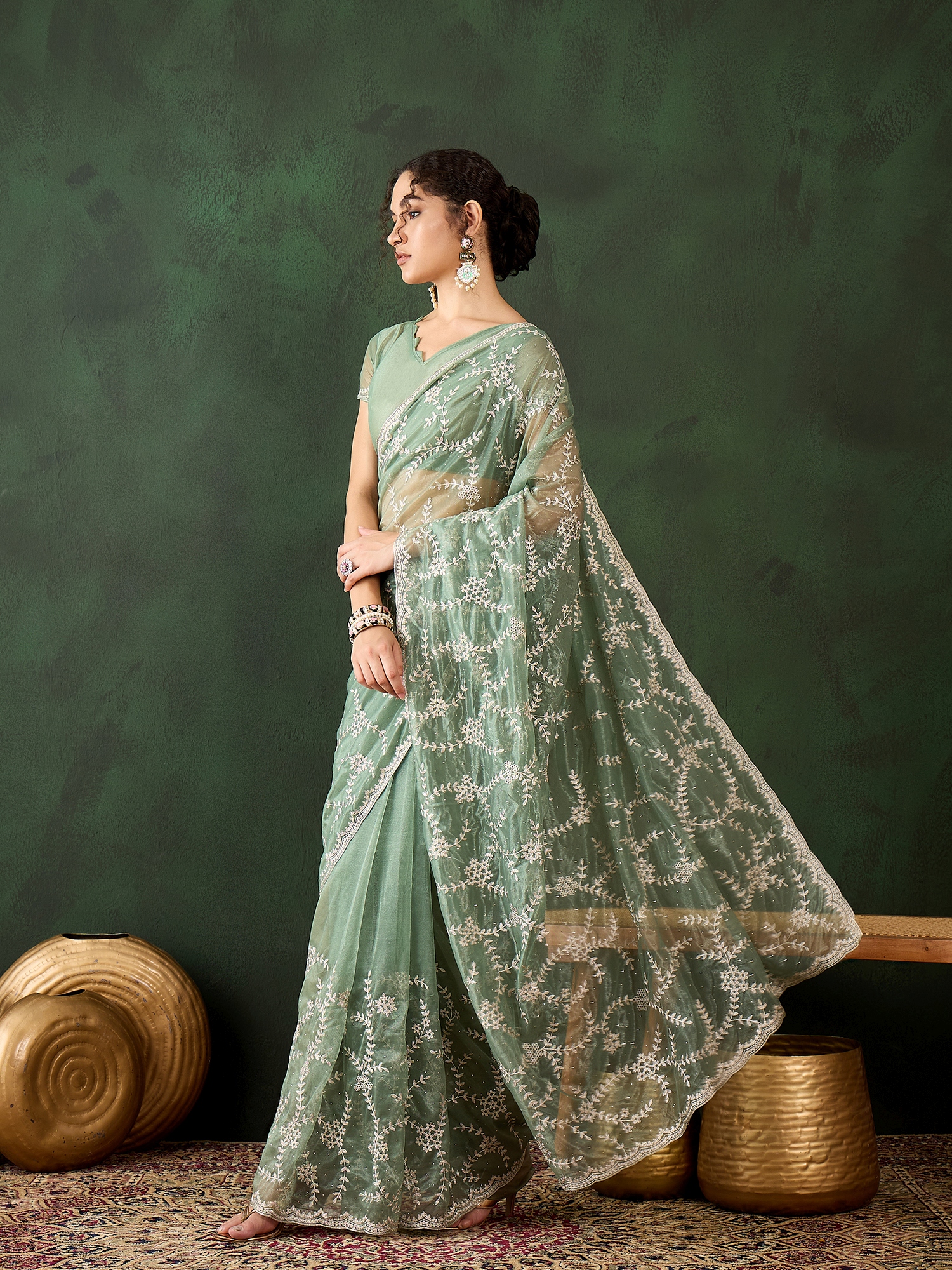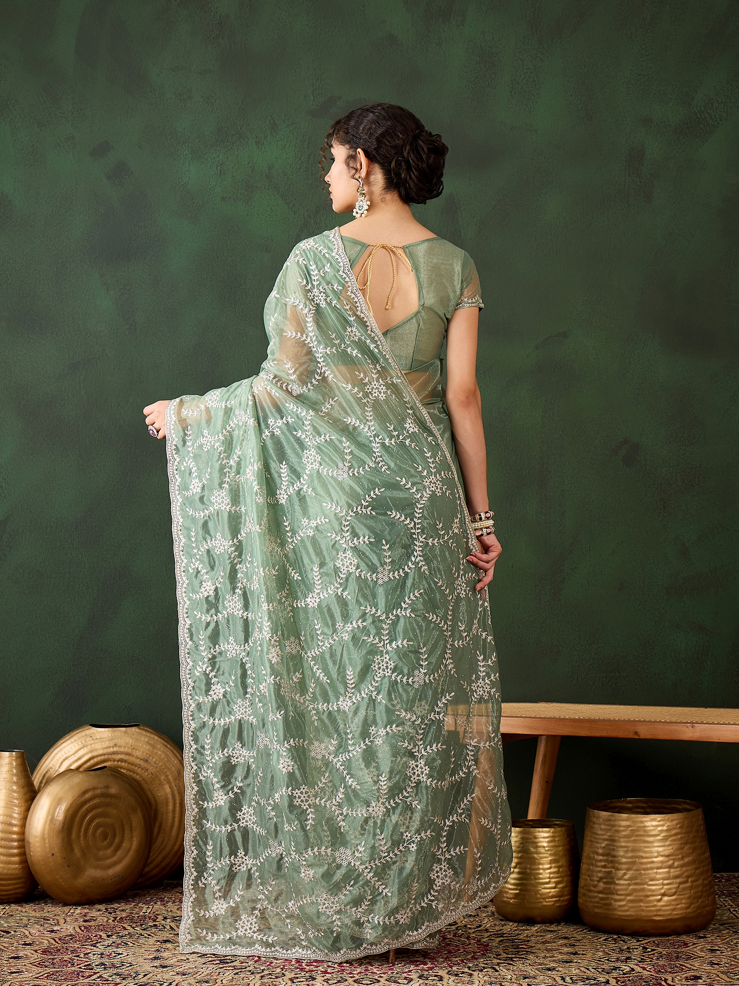 Fashion Dream Womens Sea Green Simmer Saree | Soft & Elegant Traditional Wear