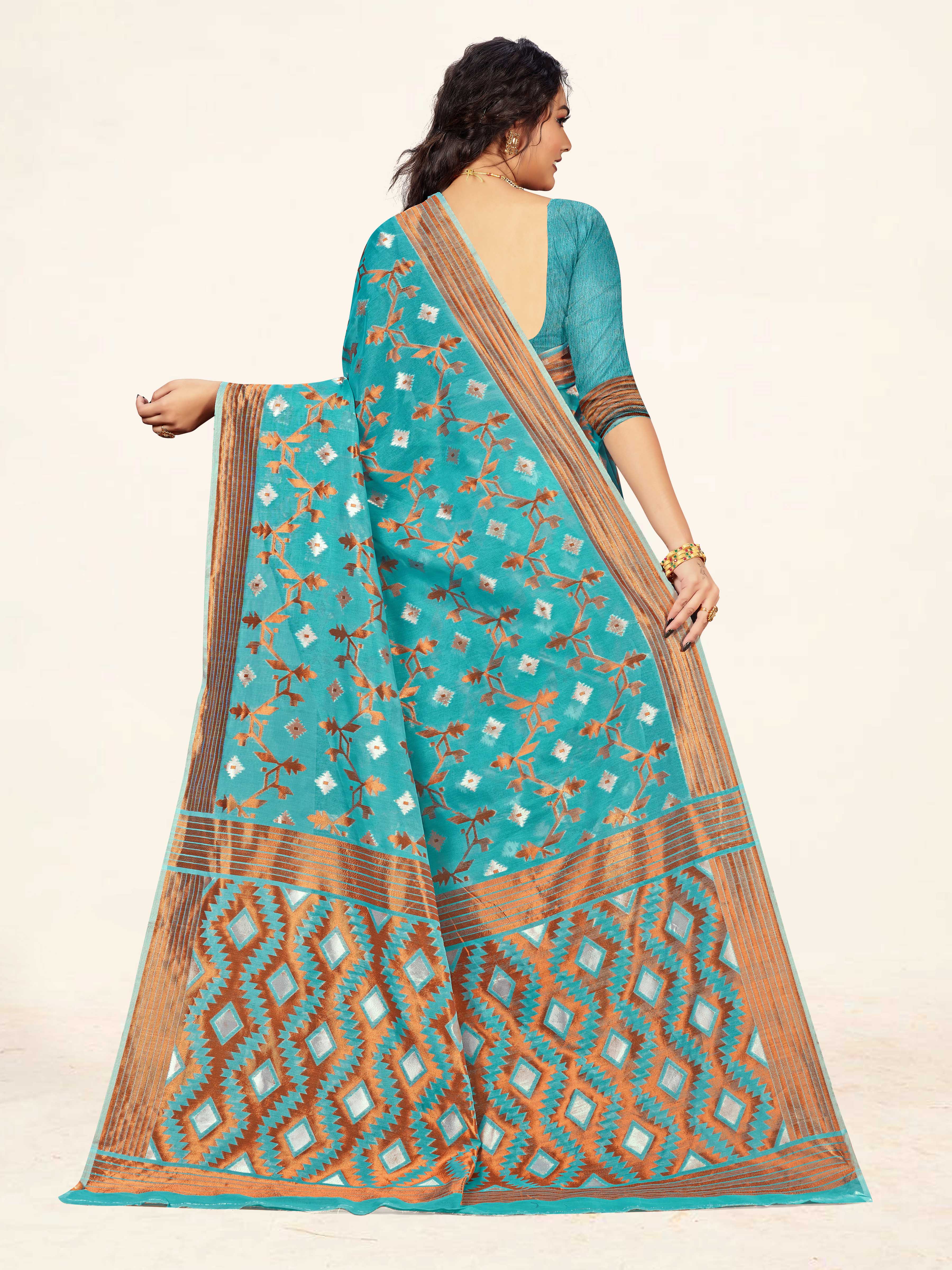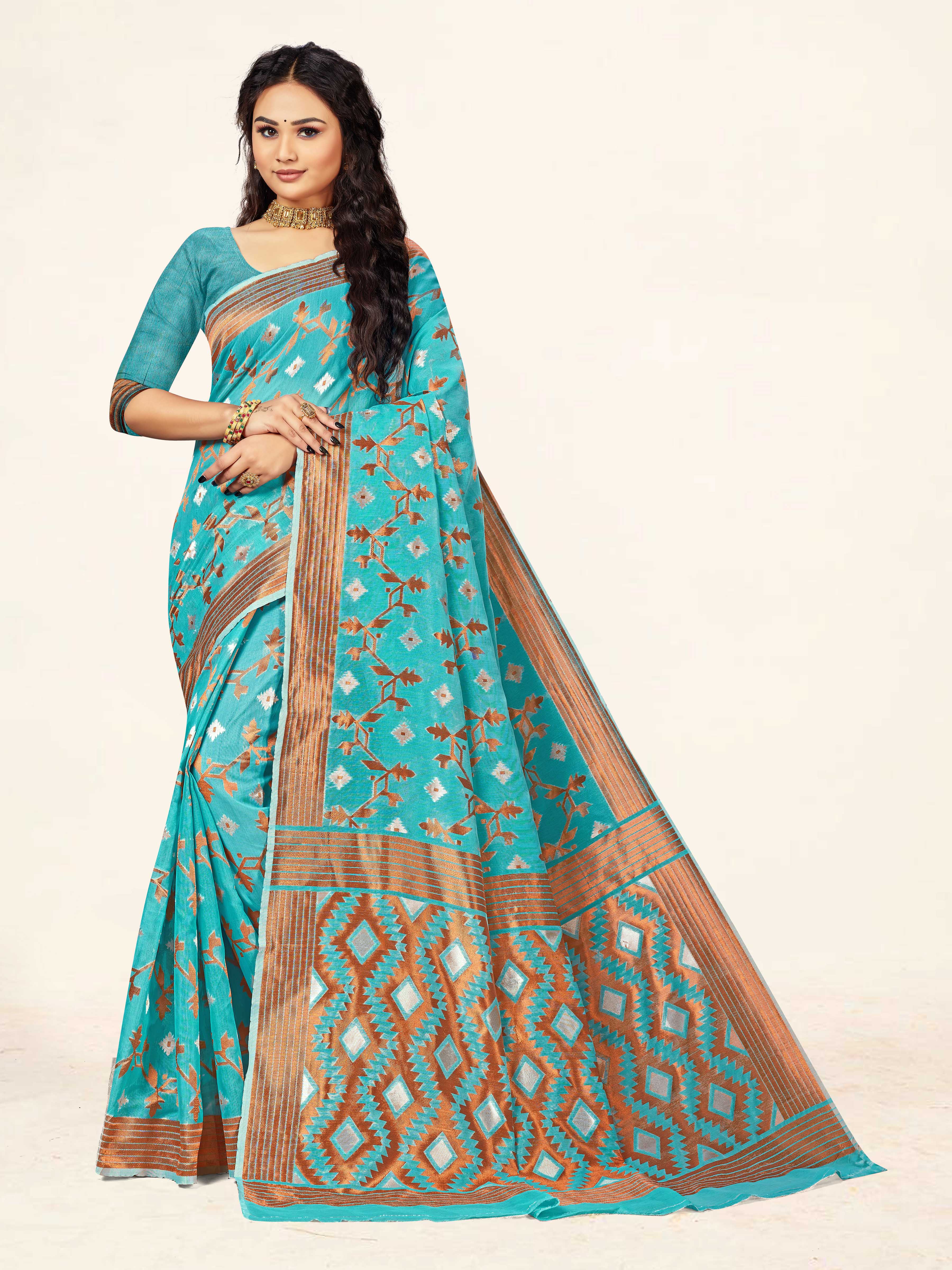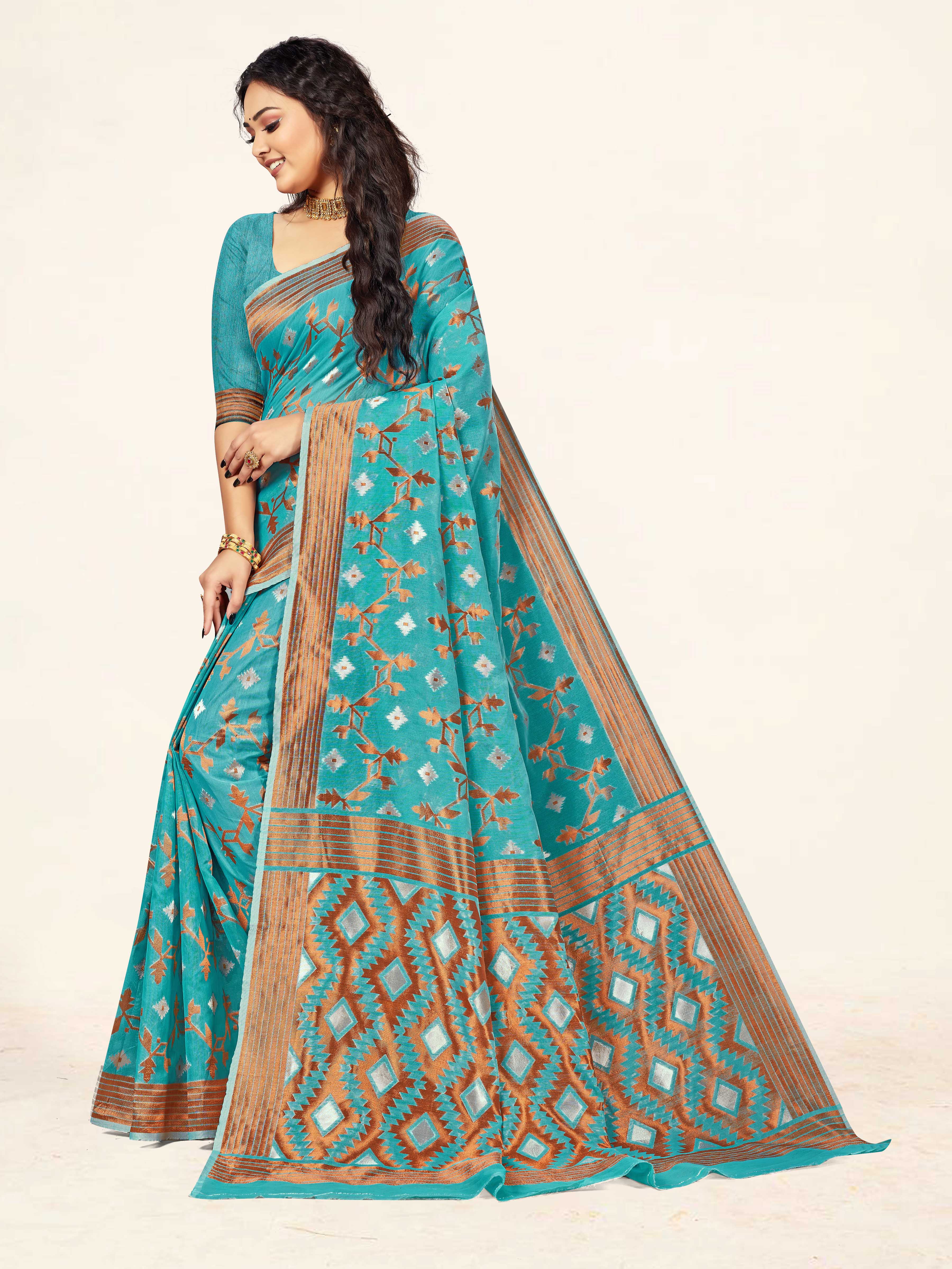 AASTHA FASHION Fashion Dream Womens Sky Blue Cotton Saree | Soft & Elegant Traditional Wear