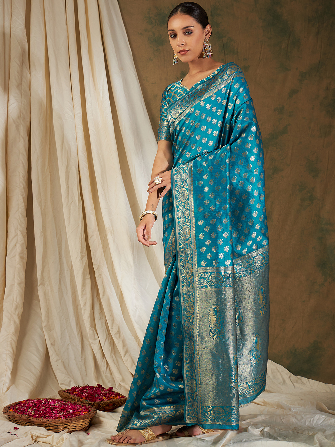 AASTHA FASHION Fashion Dream Womens Sky Blue Kanjivaram Silk Saree | Soft & Elegant Traditional Wear