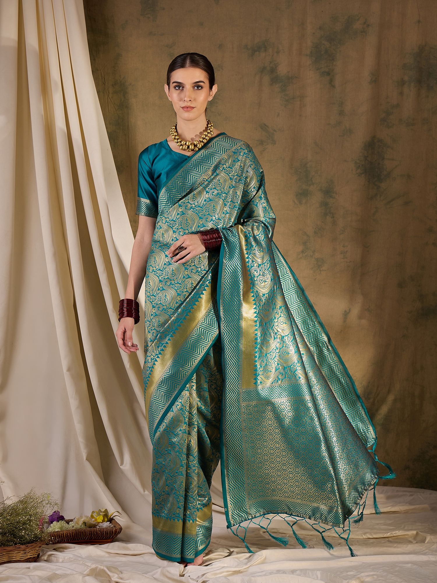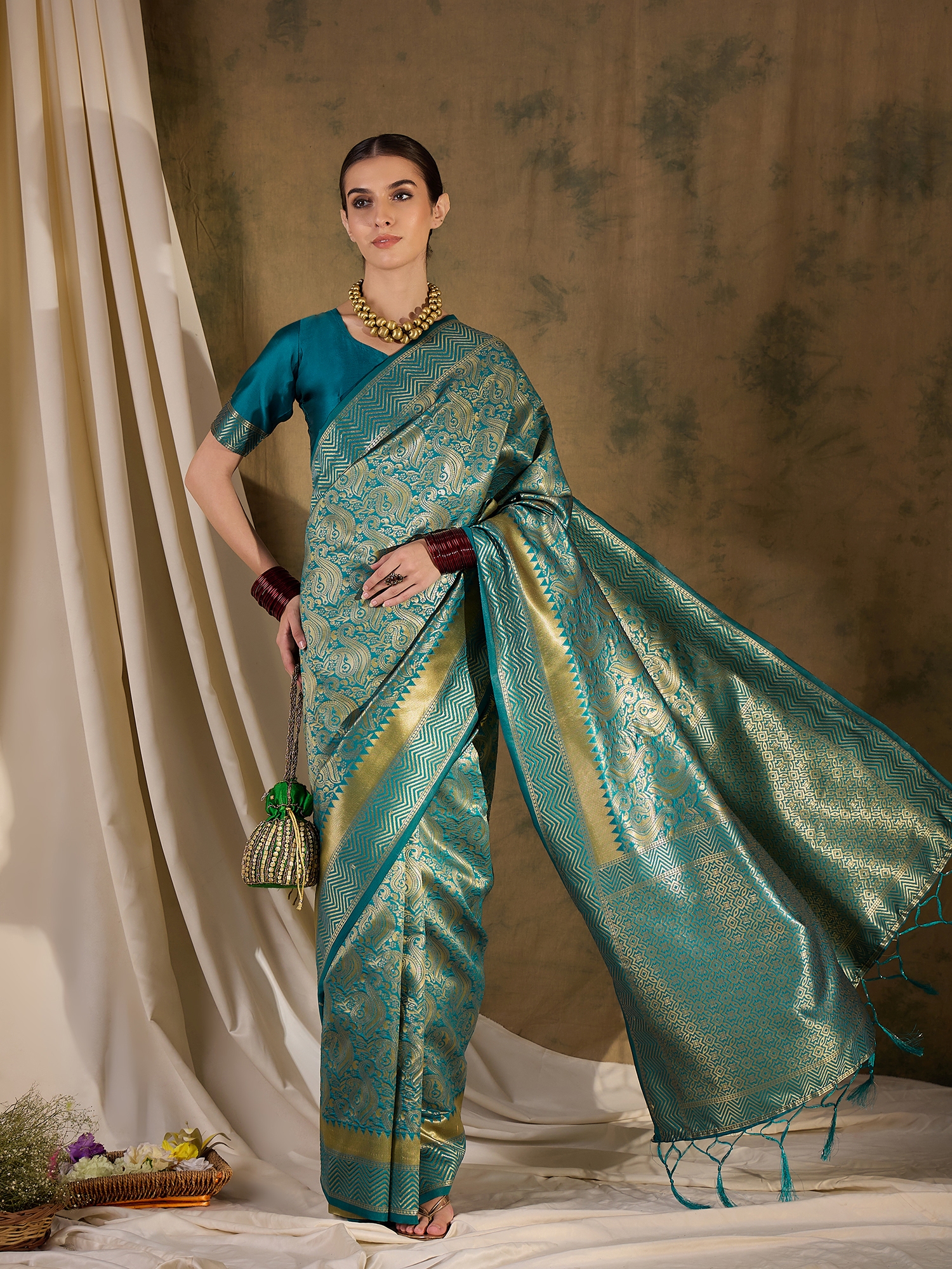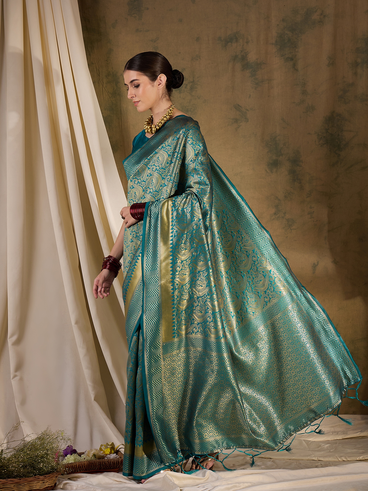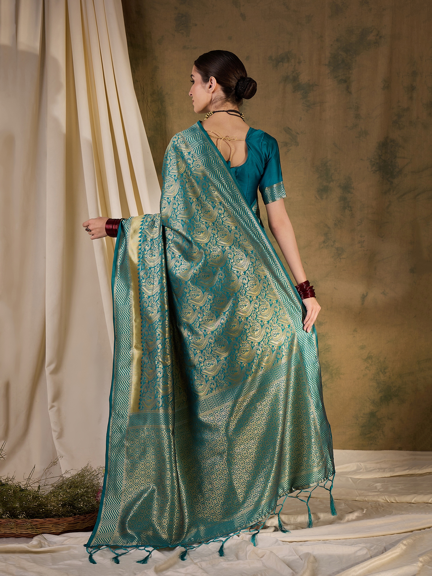 AASTHA FASHION Fashion Dream Womens Teal Banarasi Silk Saree | Soft & Elegant Traditional Wear
