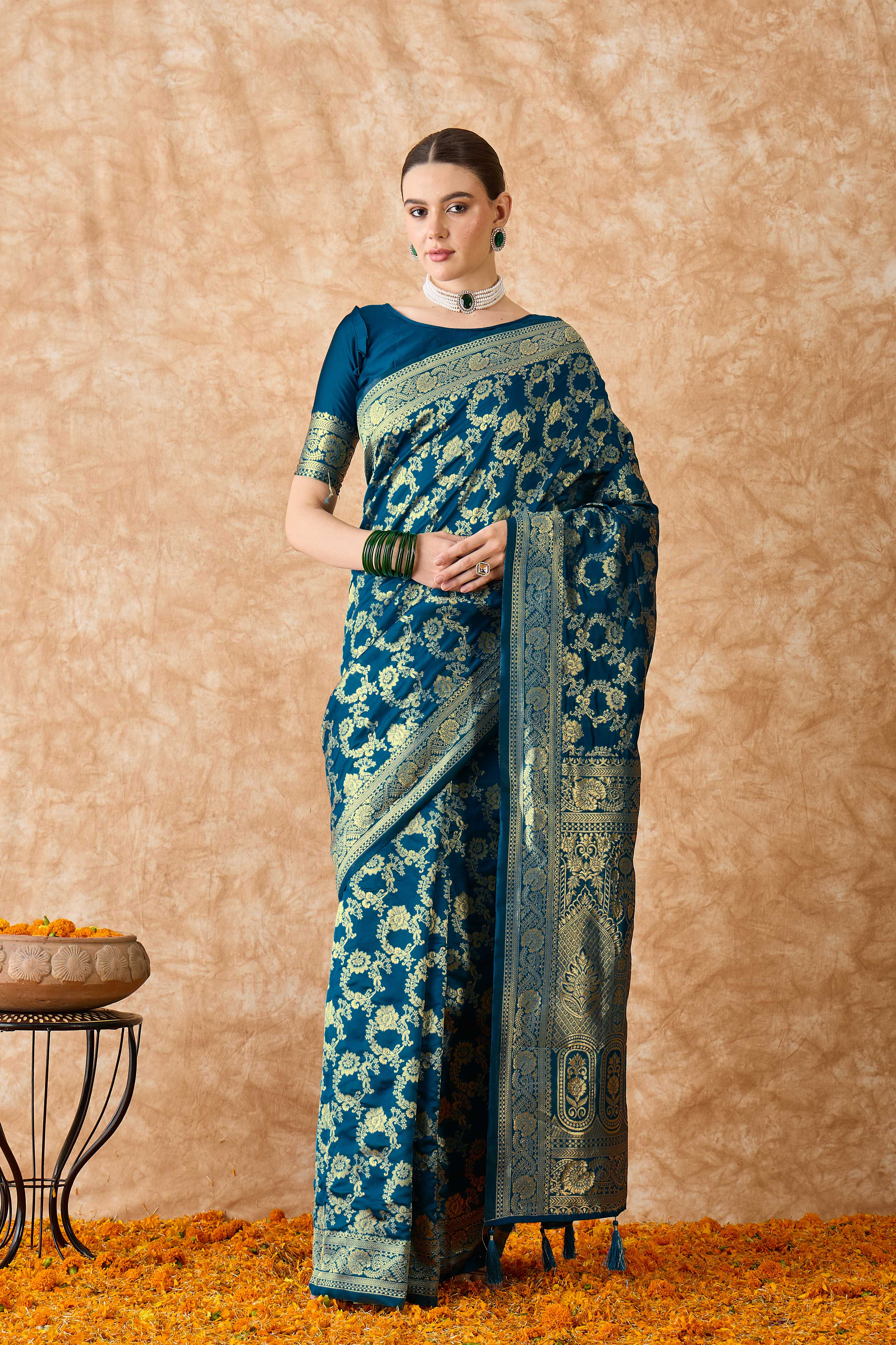 • Saree Fabric-Banarasi Silk ,Blouse Fabric-Banarasi Silk