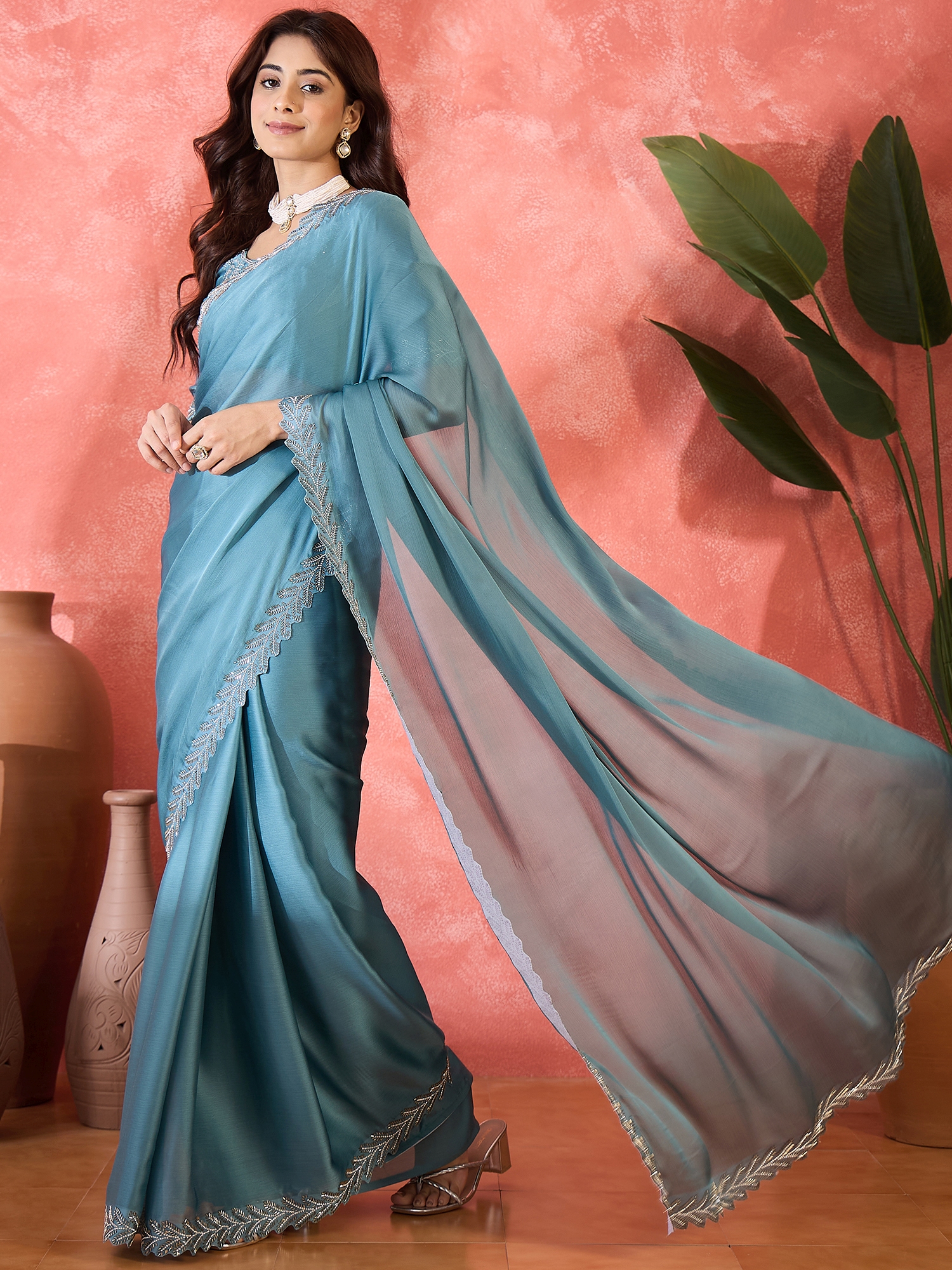 • Saree Work-Embellished ,Blouse Work- Heavy Satin Chiffon
