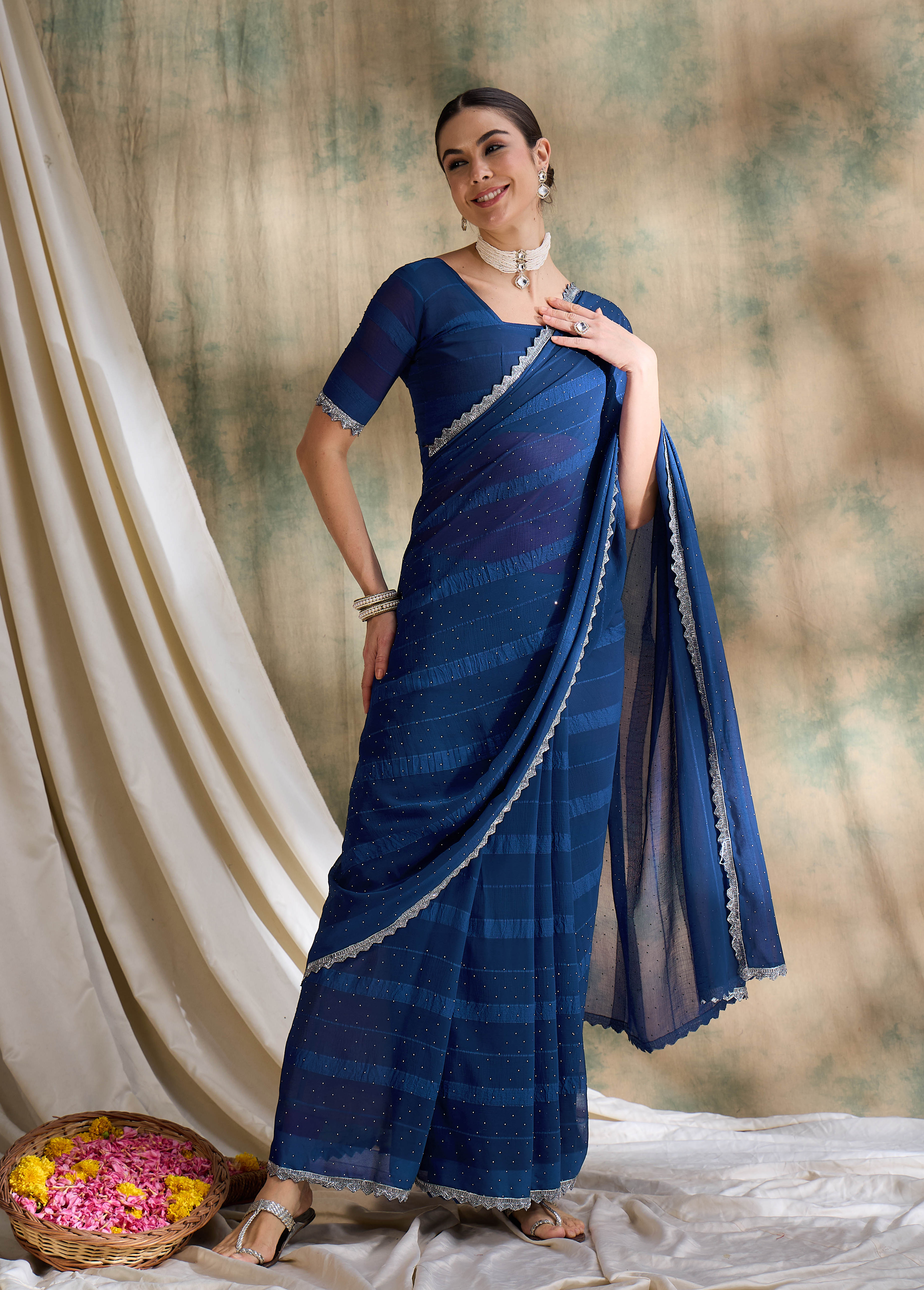 • Saree Fabric-Vichitra Silk ,Blouse Fabric-Silk Blend