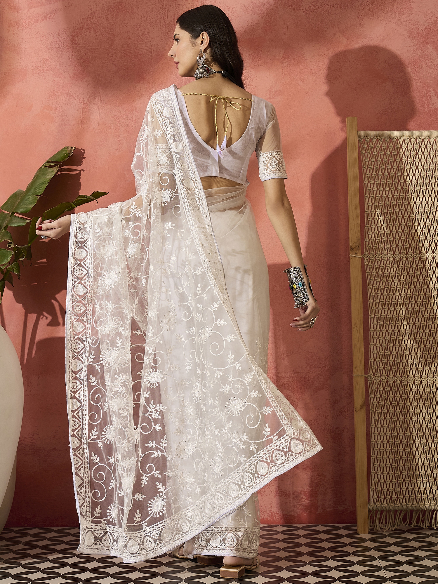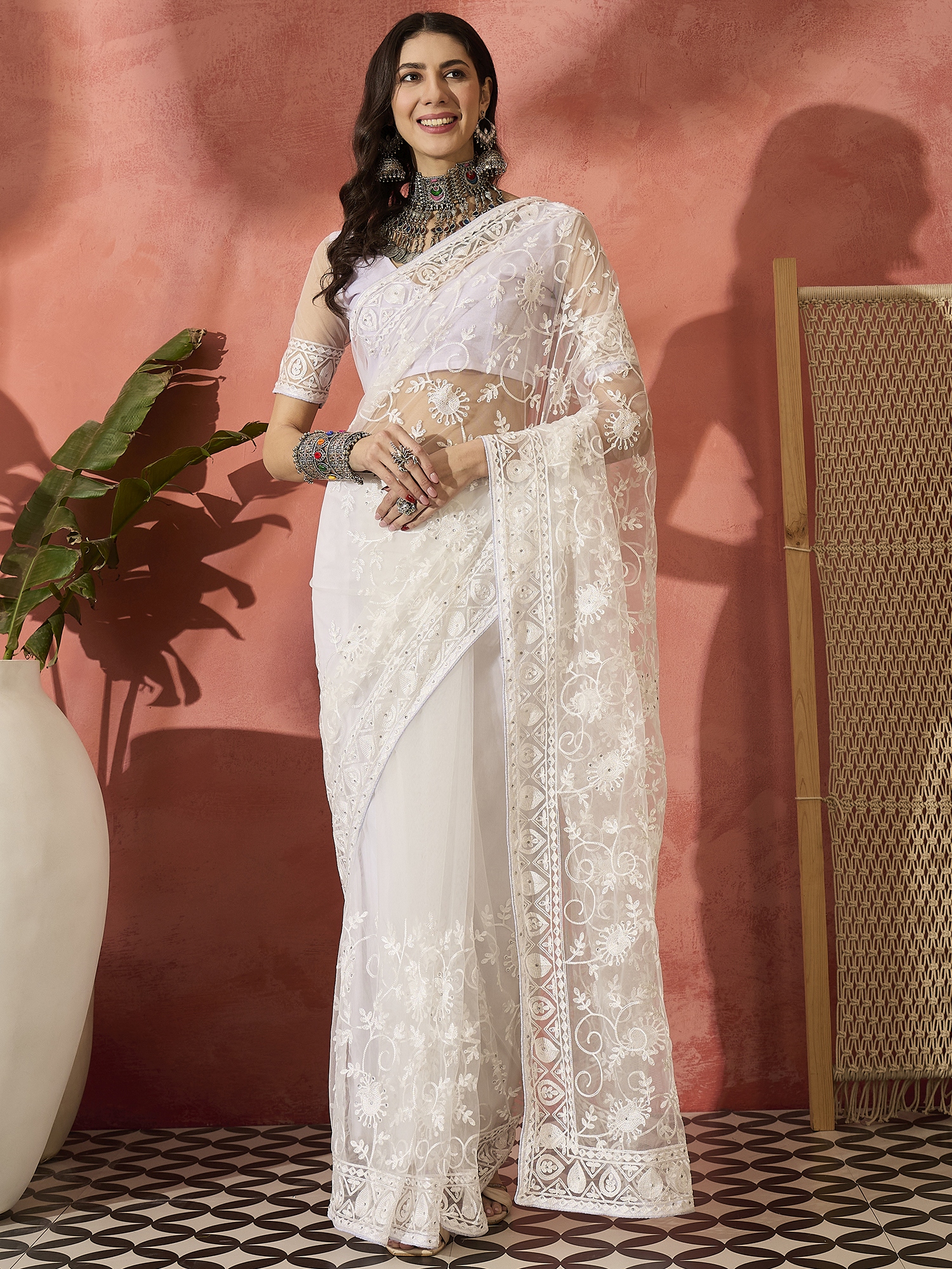 Fashion Dream Womens White Net Saree | Soft & Elegant Traditional Wear