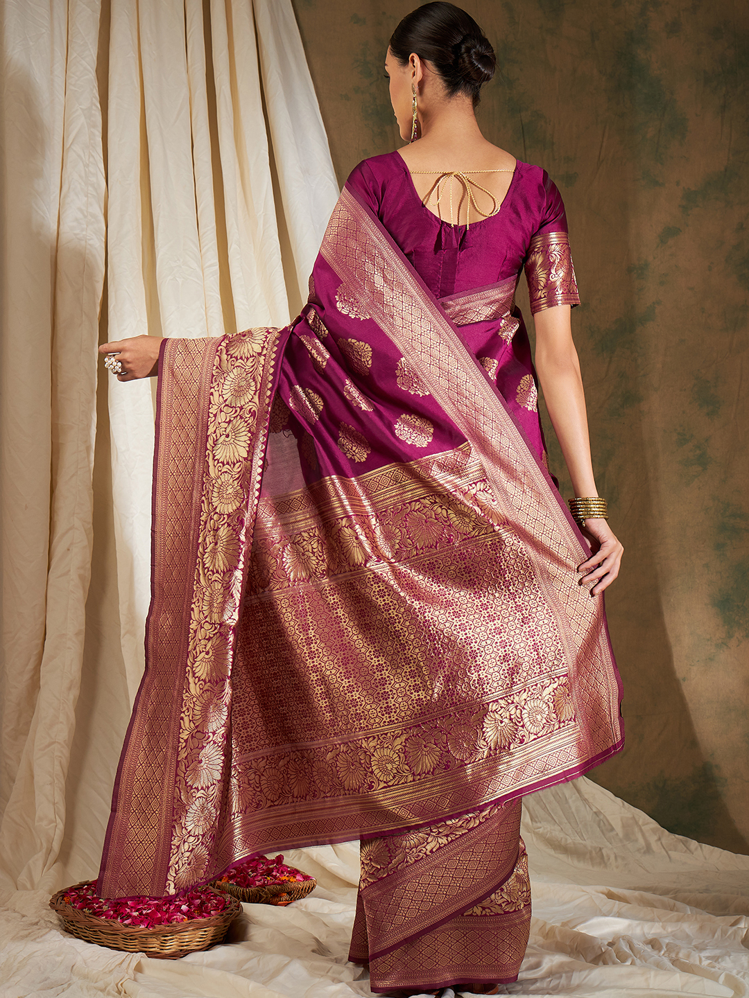 AASTHA FASHION Fashion Dream Womens WINE Banarasi Silk Saree | Soft & Elegant Traditional Wear