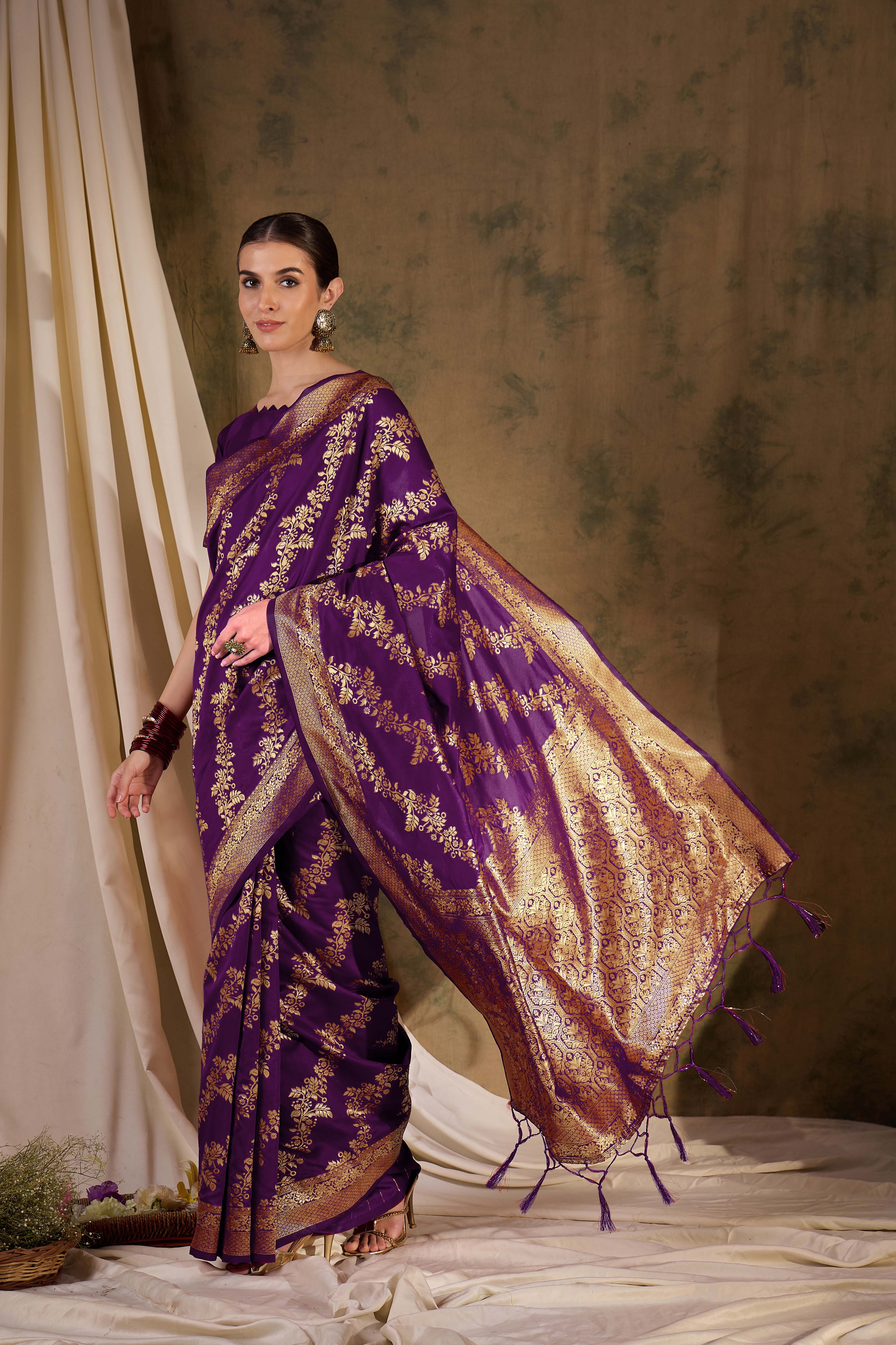 AASTHA FASHION Fashion Dream Womens Wine Banarasi Silk Saree | Soft & Elegant Traditional Wear