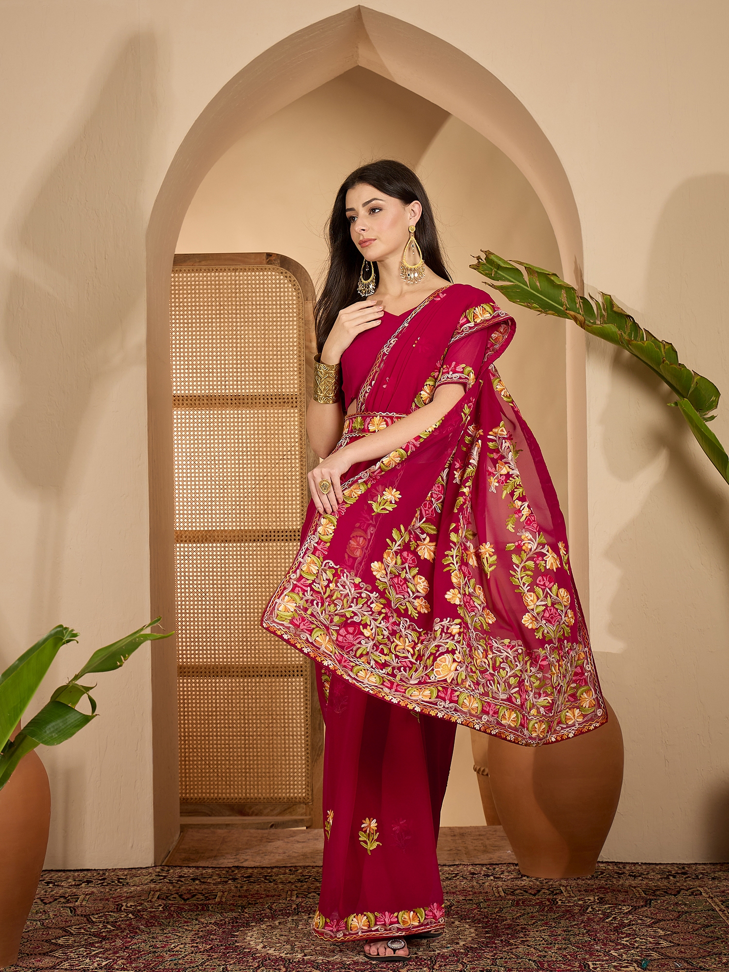 AASTHA FASHION Fashion Dream Womens Wine Georgette Saree | Soft & Elegant Traditional Wear