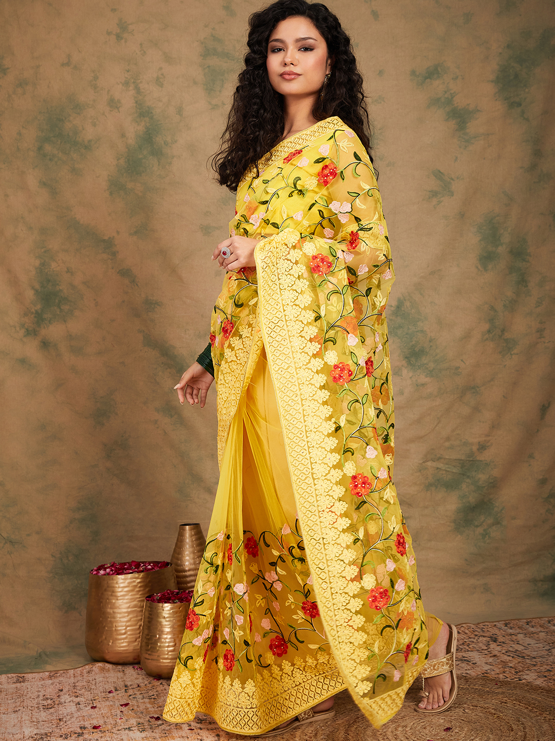 AASTHA FASHION Fashion Dream Womens Yellow Net Saree | Soft & Elegant Traditional Wear