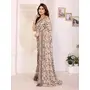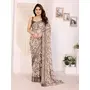 Beige Color Moss Satin Patta Designer Flower Printed Ceremonial Saree