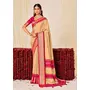 Beige Color Velvet Tussar Silk Fabric Woven Saree With Smart Elegant Print