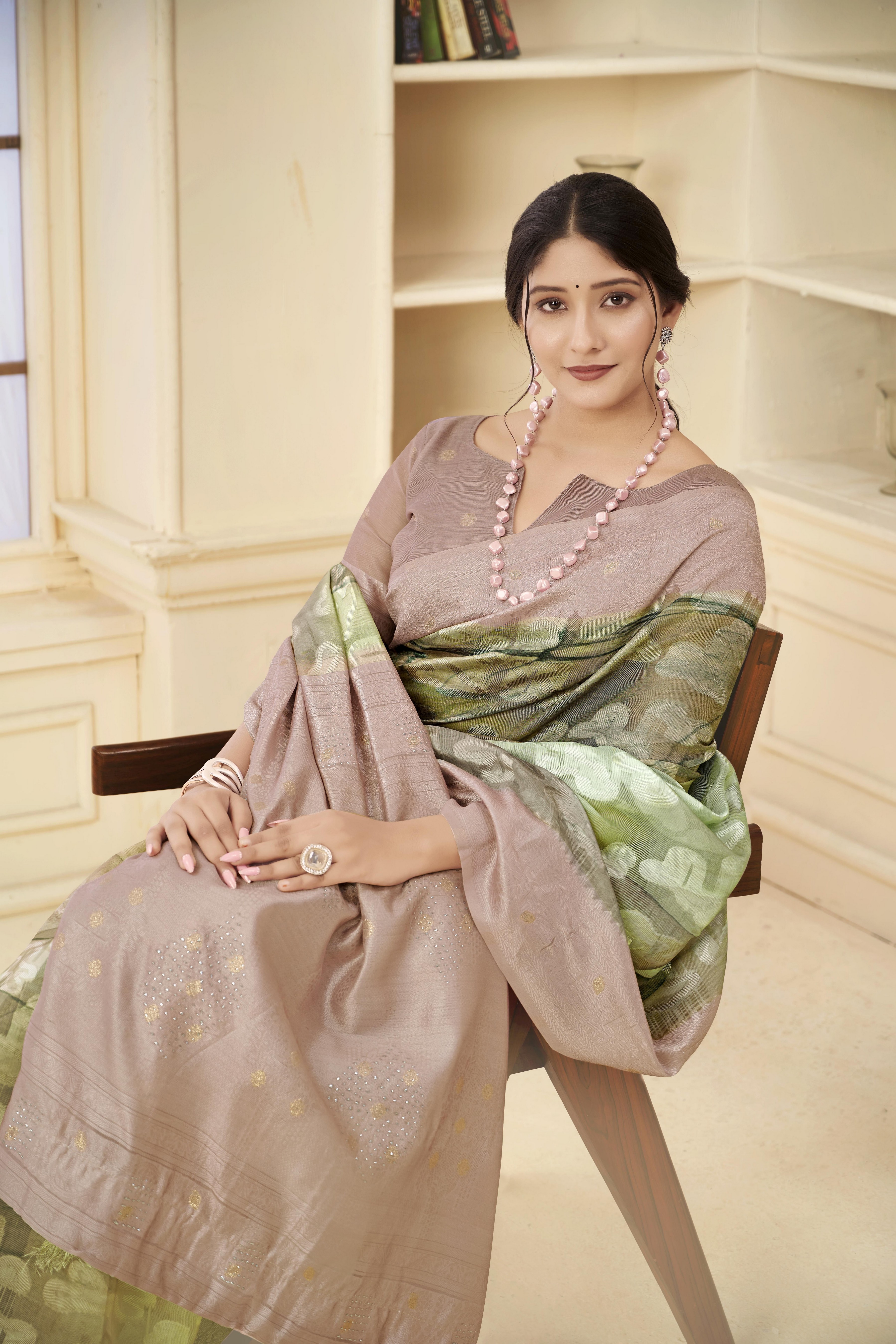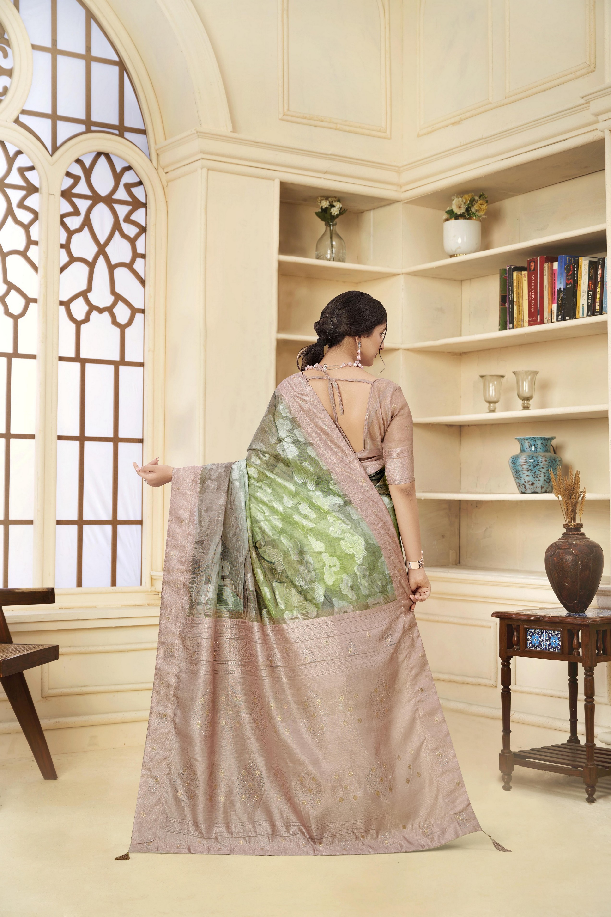 Beige Color Wevon Jacquard Designer With Printed Rich Silk Fabric Stylish Ceremonial Saree
