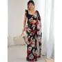 Black Color Georgette Fabric Designe Floral Printed Bollywood Style Saree