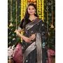 Black Color Linen Cotton Fabric Beautiful Woven Designer Partywear Saree