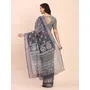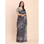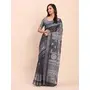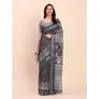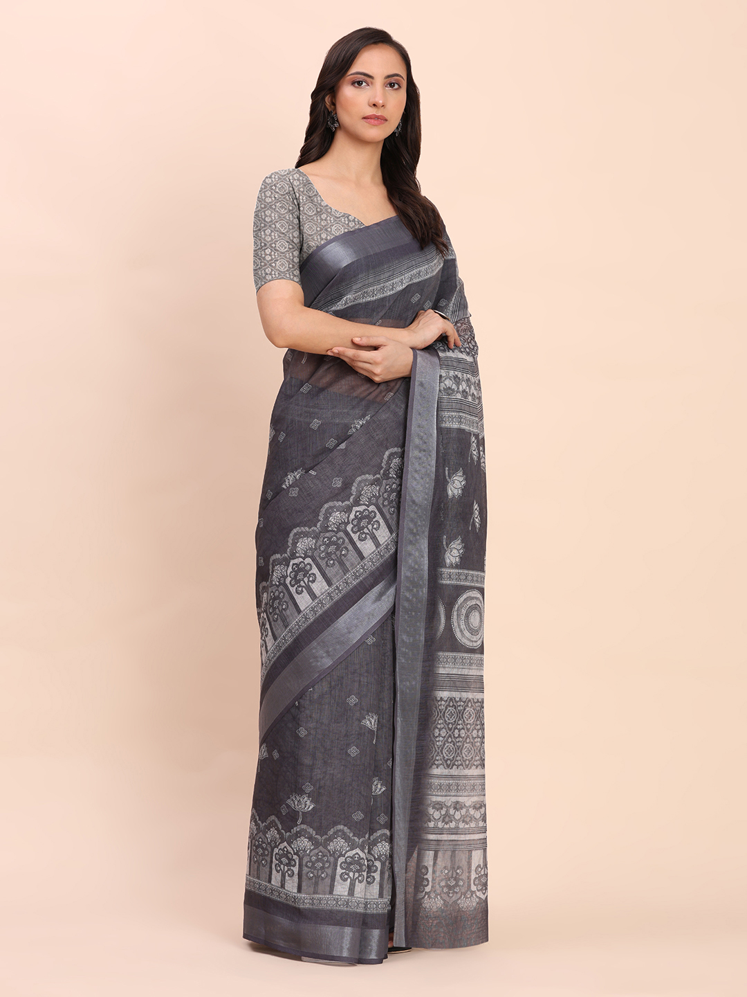 Black Color Linen Cotton fabric Woven Border Saree With Smart Print Designer Looks