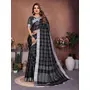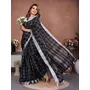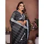 Black Color Linen Cotton Fabric Woven Checks Designer Trendy Ethnic Saree