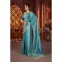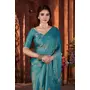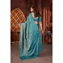 Blue Color Beautiful Heavy Work Ceremonial Fandy Satin Silk Saree