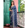 Blue Color Designer Chiffon Fabric Saree For Ceremonial Looks
