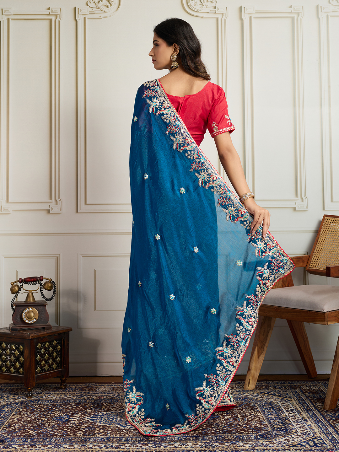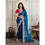 Blue Color Frendy Chiffon Fabric Designer Embroidery Work Heavy Ceremonial Saree