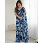 Blue Color Georgette Fabric Designe Floral Printed Bollywood Style Saree