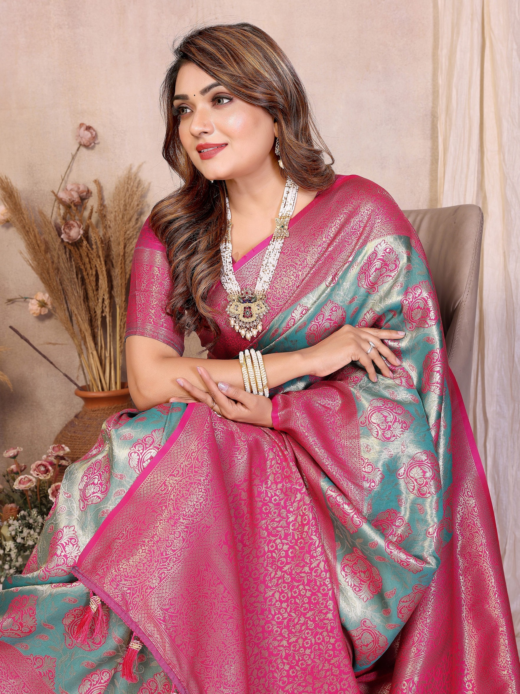 Blue Color Heavy Rich Banarasi Tissue Silk For Ceremonial Traditional Looks