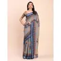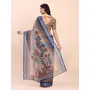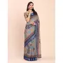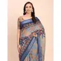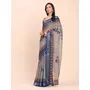 Blue Color Linen Cotton fabric Woven Border Saree With Smart Print Designer Looks