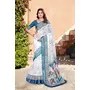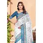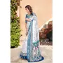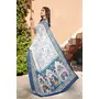 Blue Color Linen Cotton Saree With Smart Partywear Printed Looks