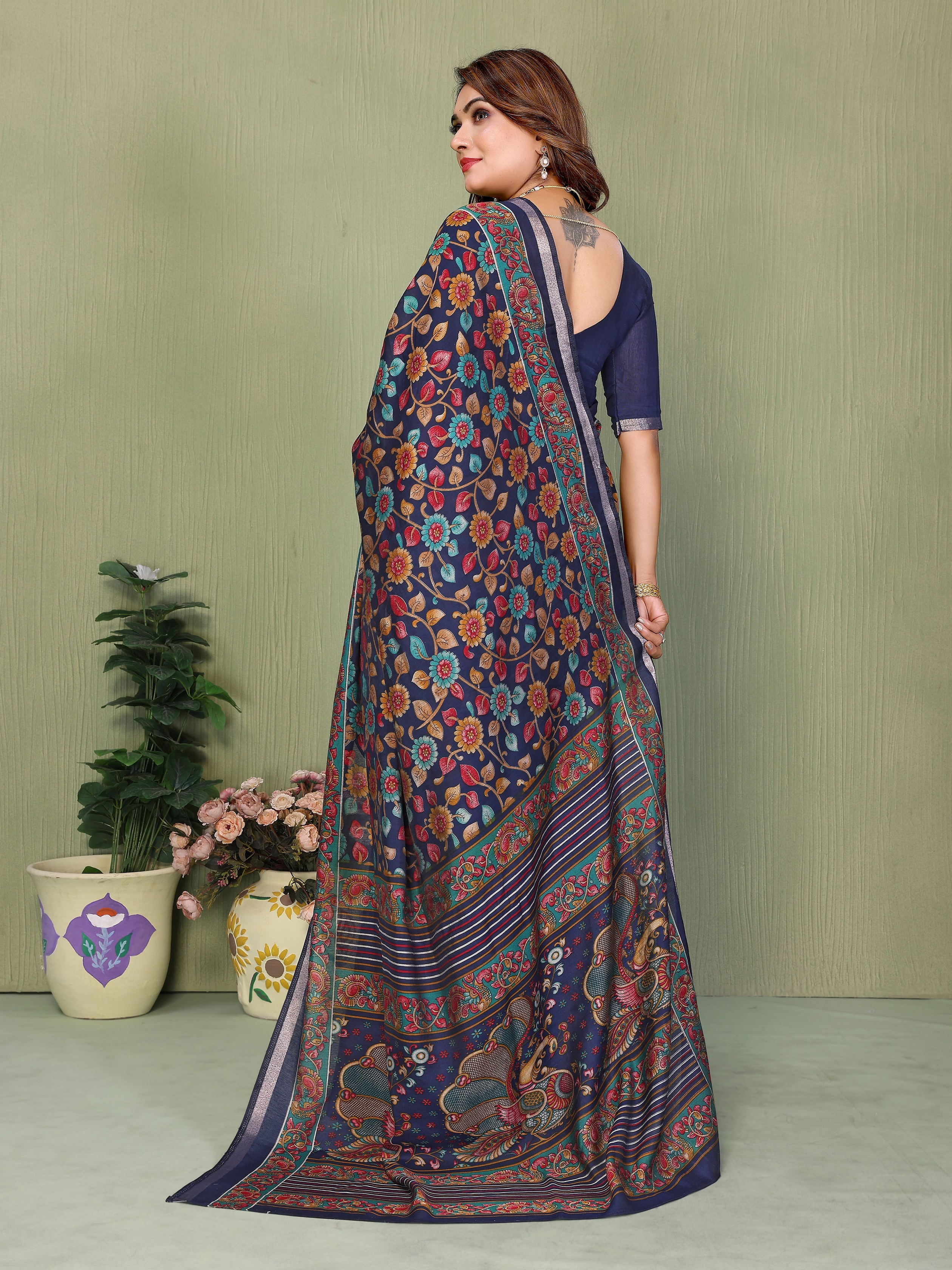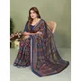 Blue Color Mul Cotton Fabric Designer Printed Partywear Saree