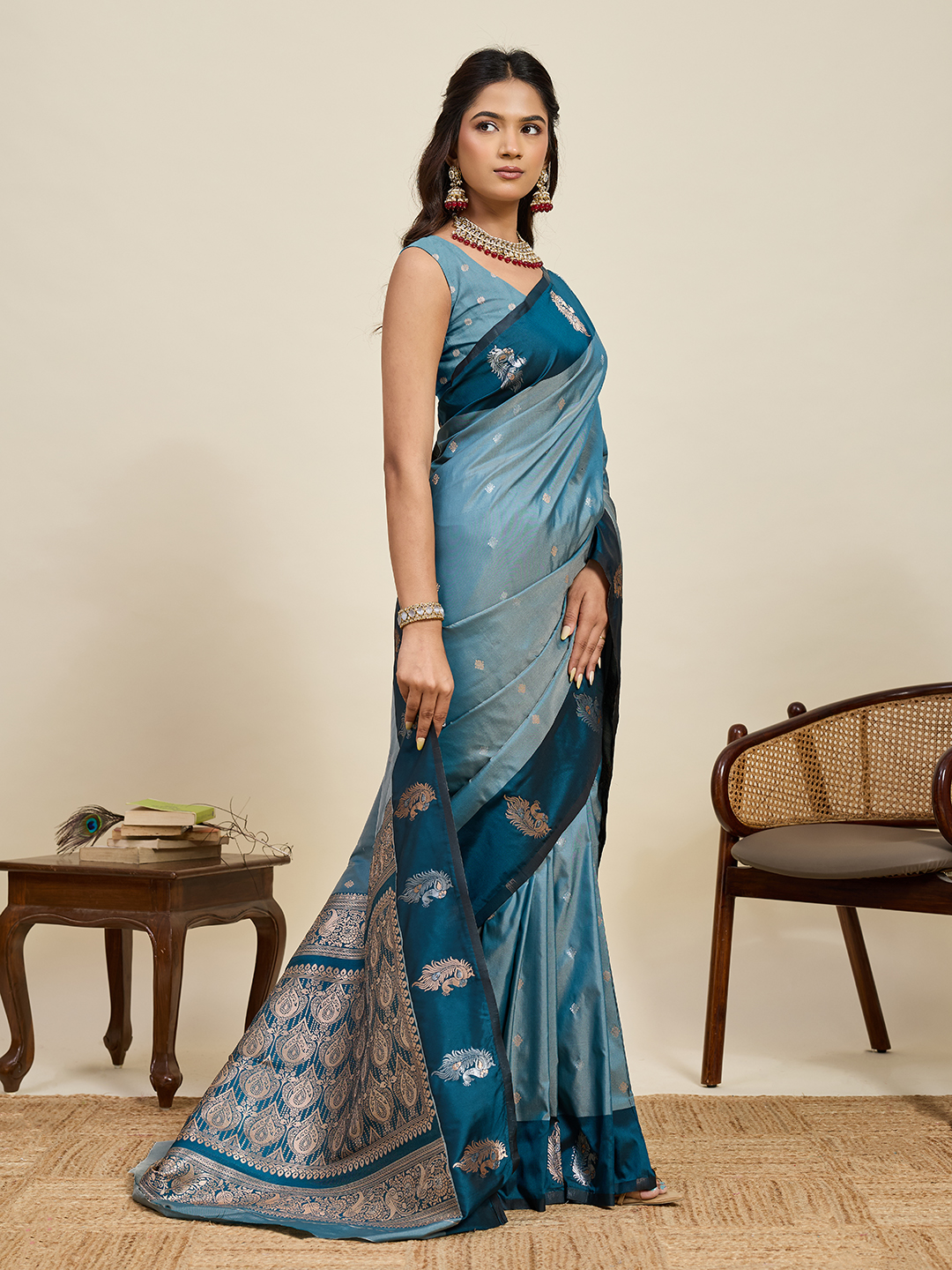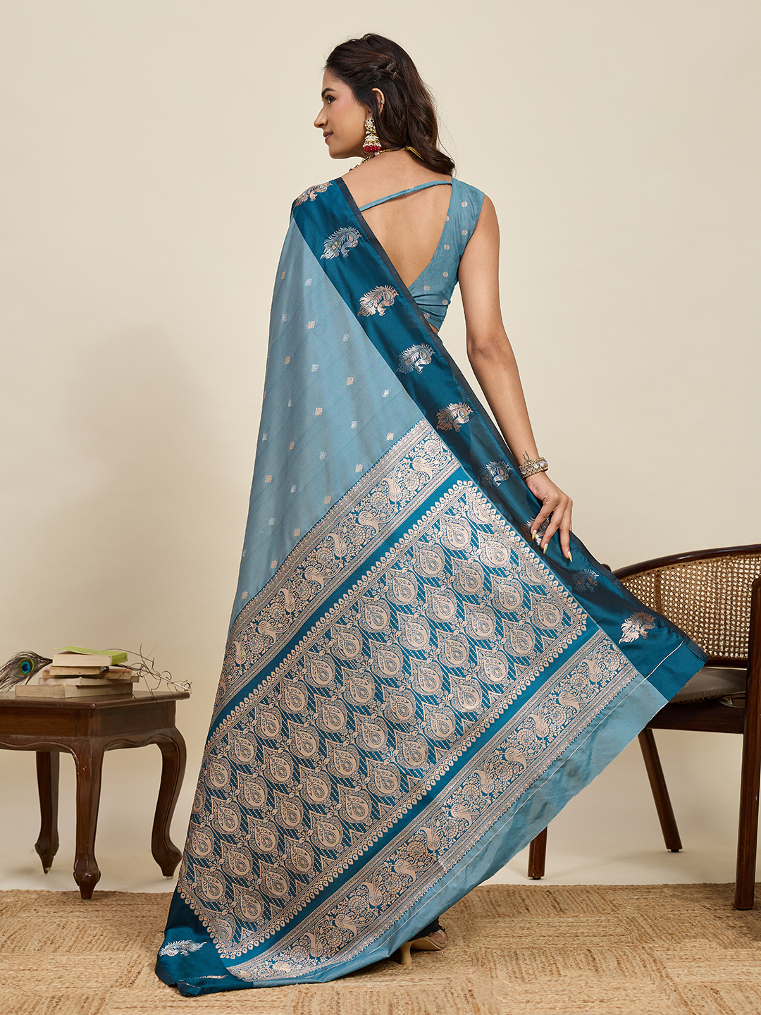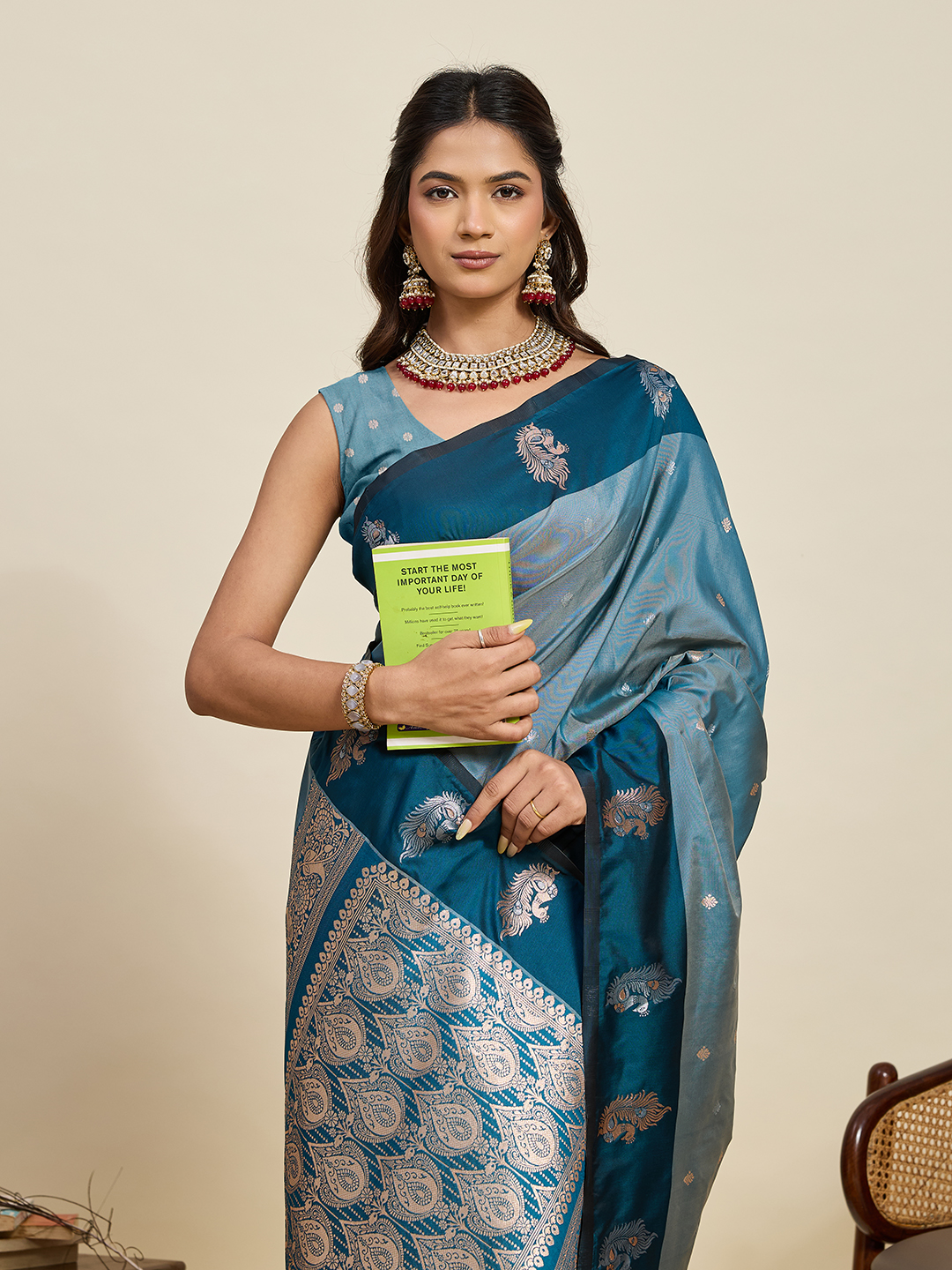 Blue Color Soft Silk Fabric Designer Ethnic Woven Traditional Saree