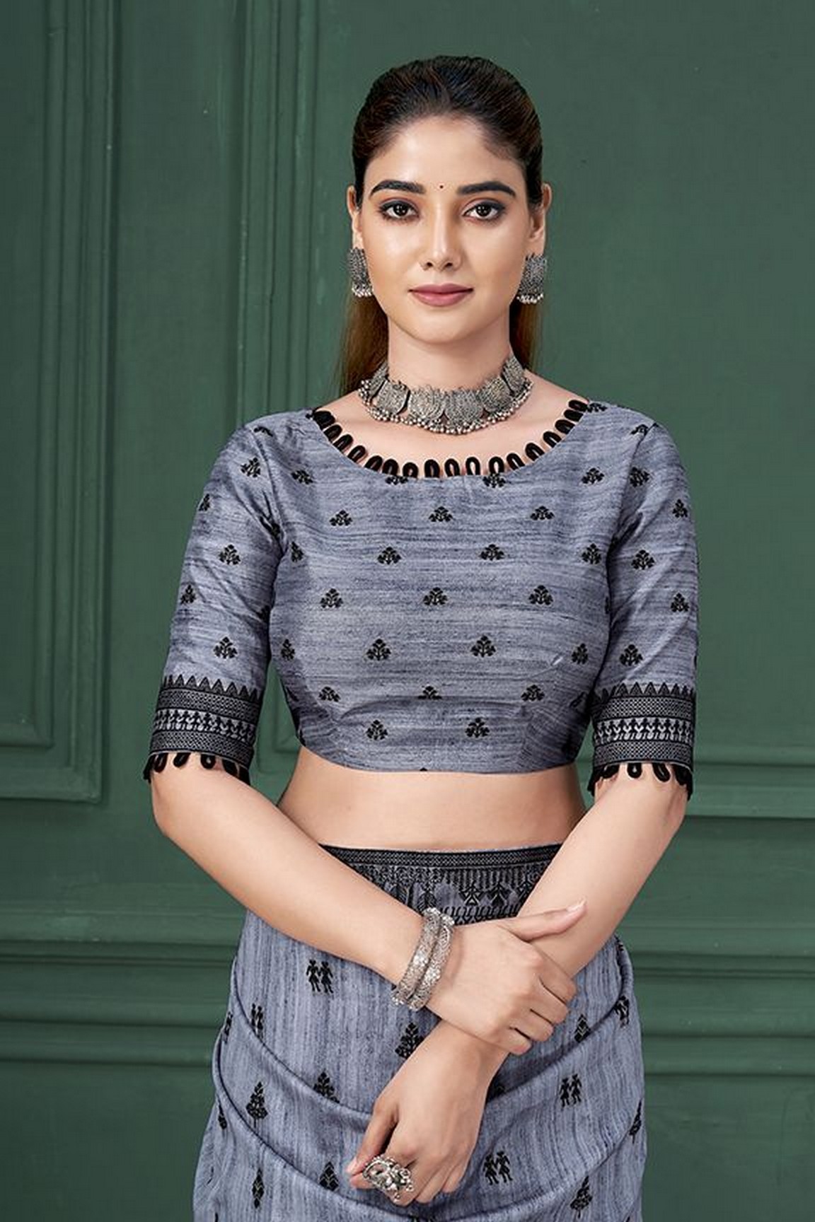 Blue Color Warli Silk Fabric Warli Print Graceful Ceremonial Saree