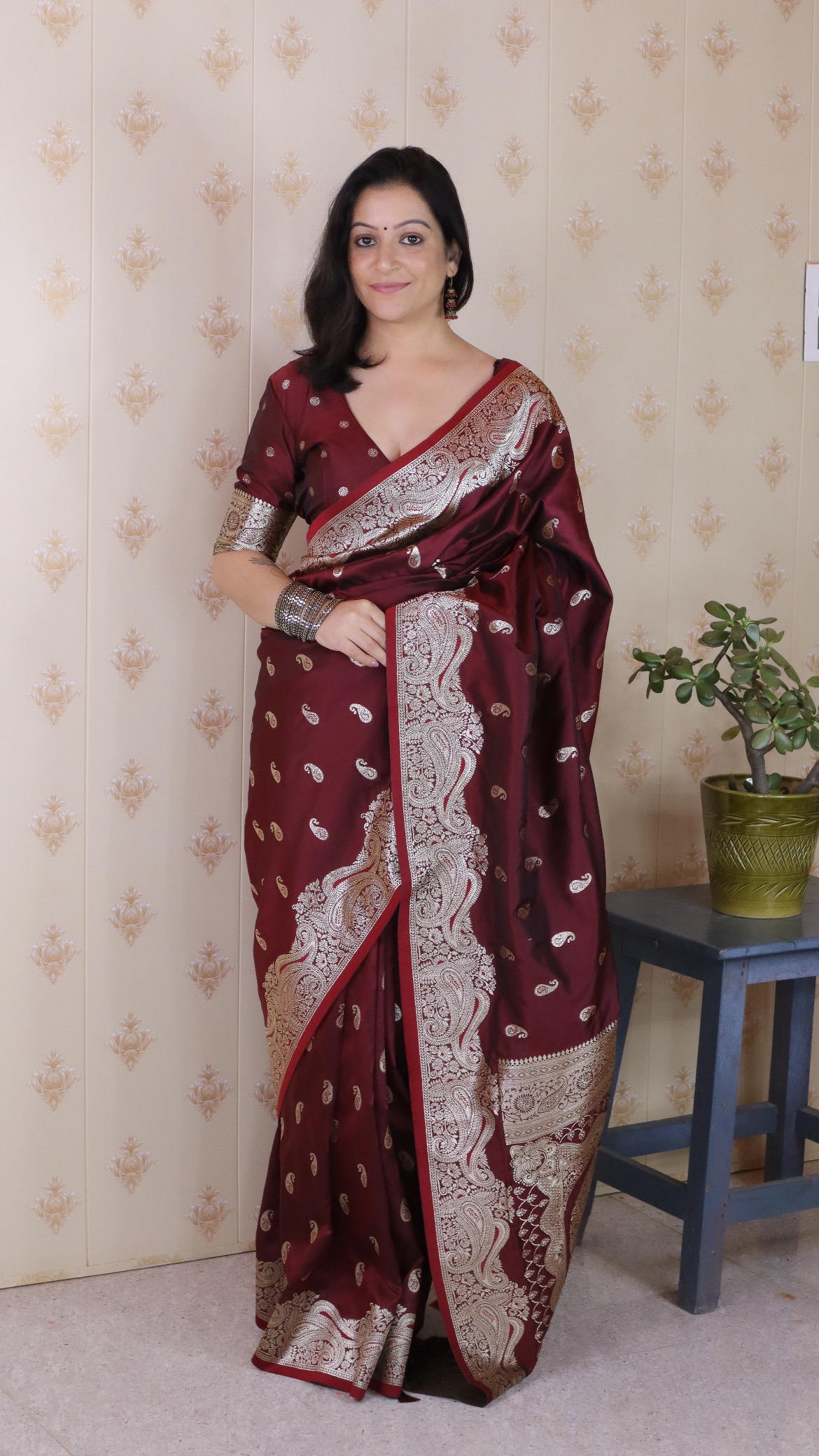 Brown Color Banarasi Silk Saree Woven Silver Jari Designer Ceremonial Partywear Saree