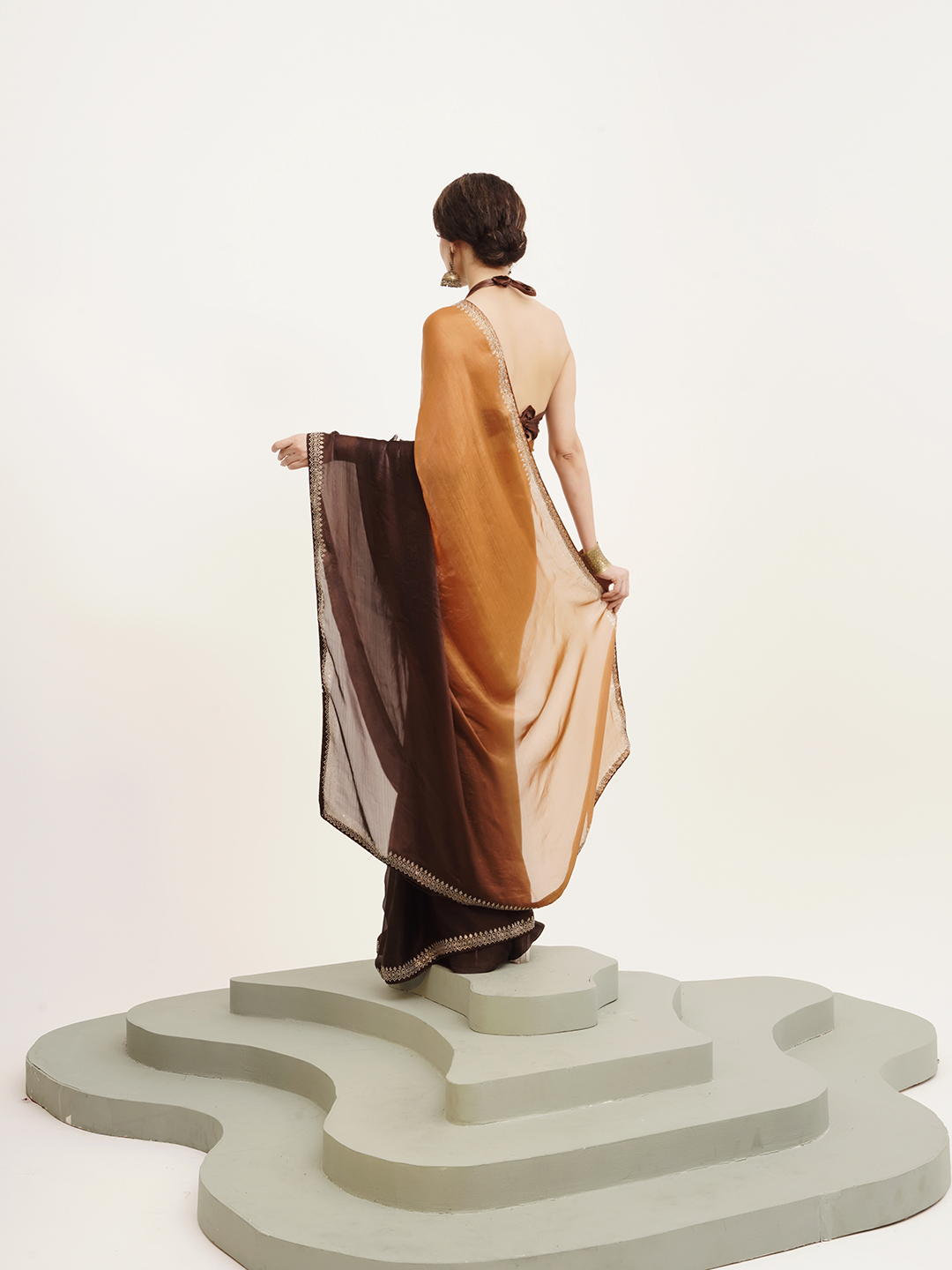 Brown Color Embellished Beads and Stones Chiffon Saree For Beautiful Partywear Saree