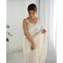 Cream Color Georgette Fabric Beautiful Partywear Embroidered Saree