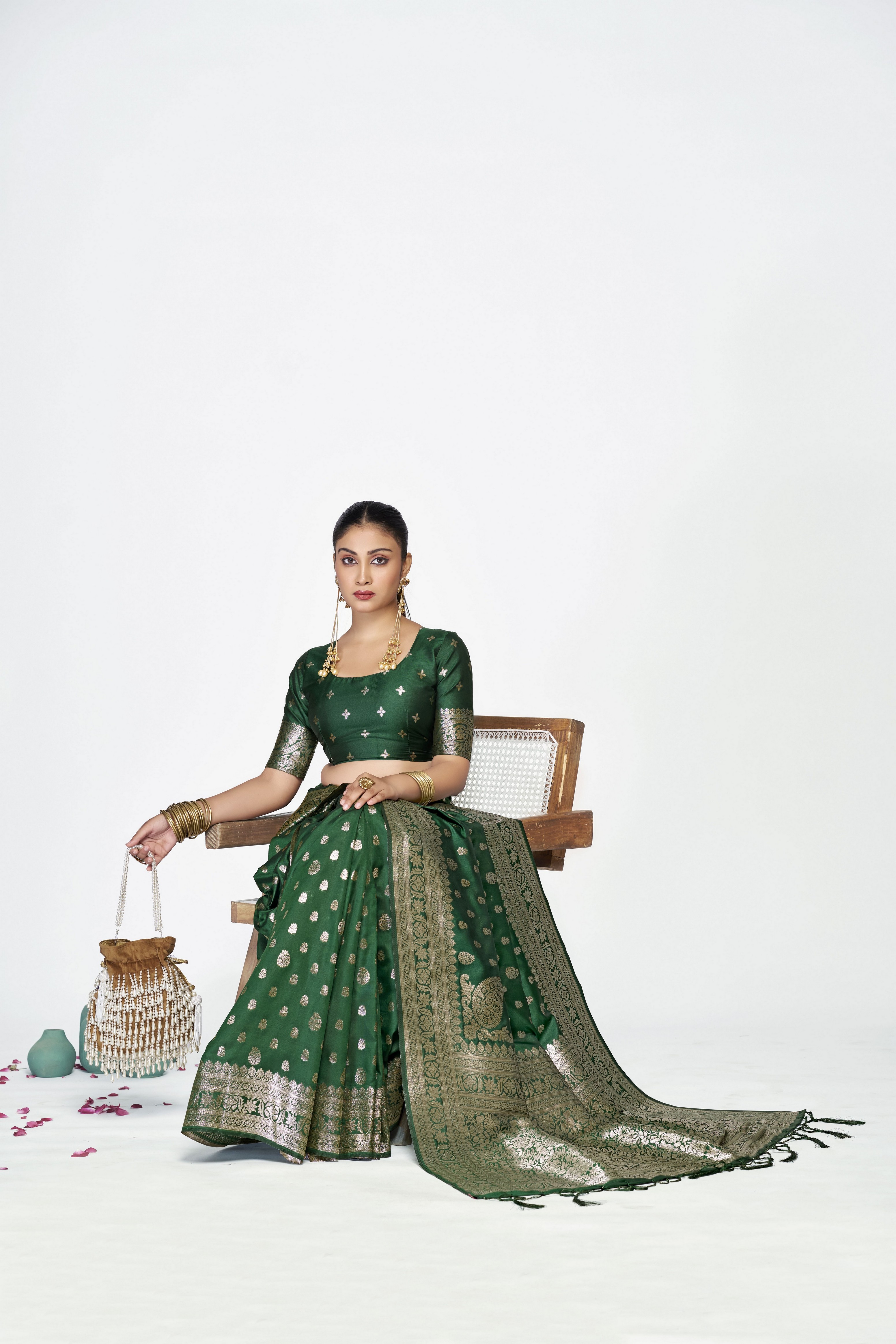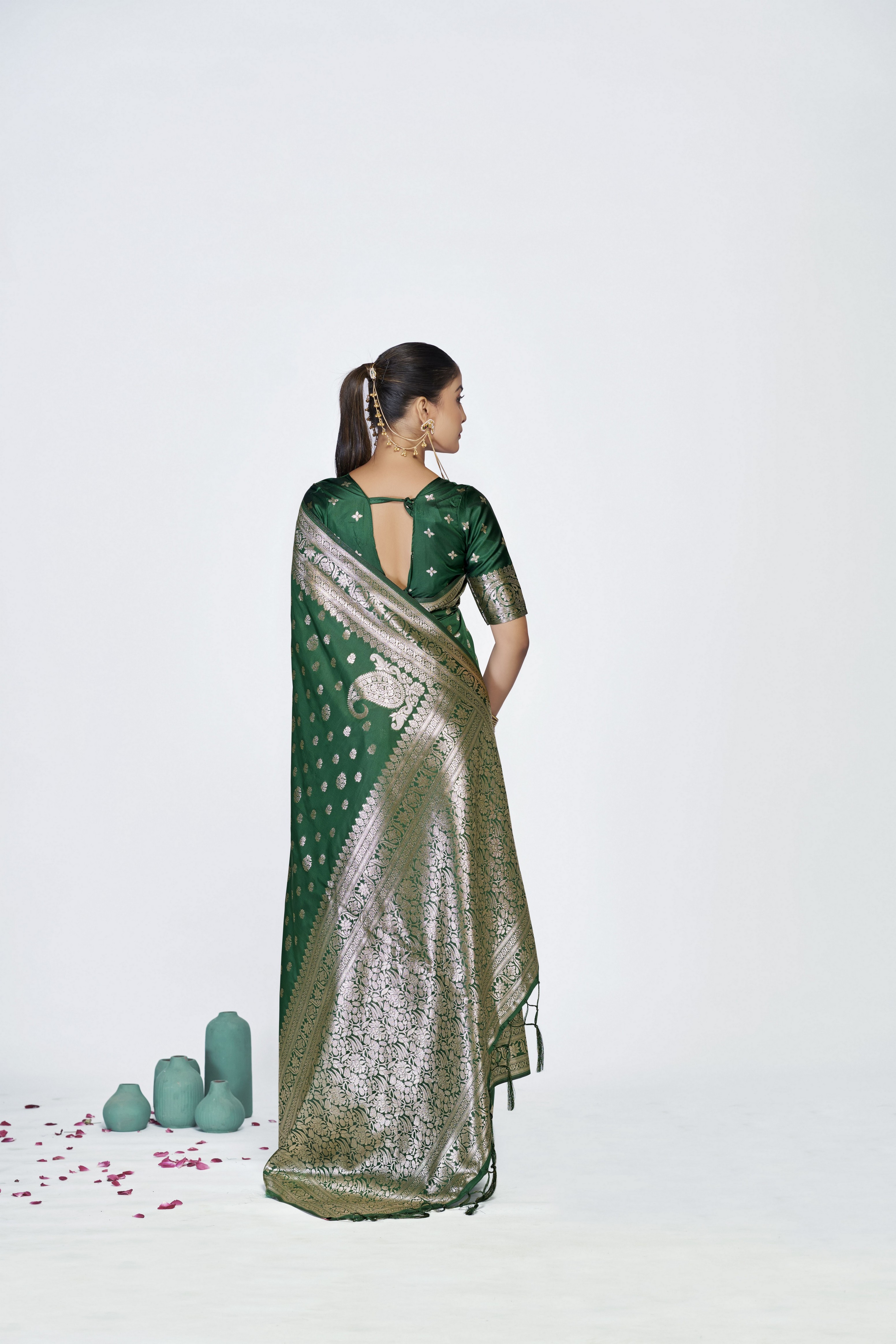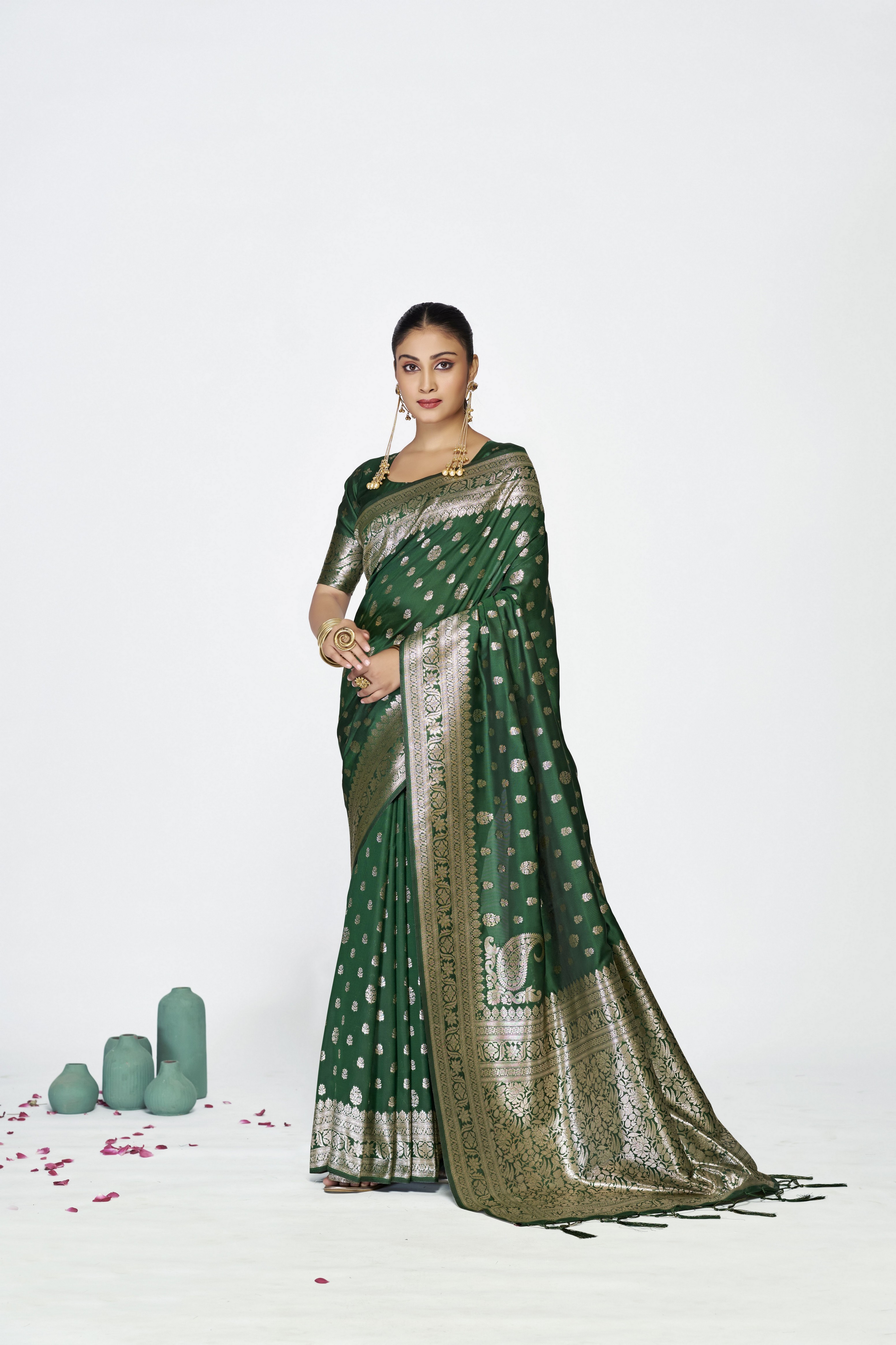 Green Color Banarasi Silk Fabric Woven Jari Butti Designer Celebrity Fancy Saree