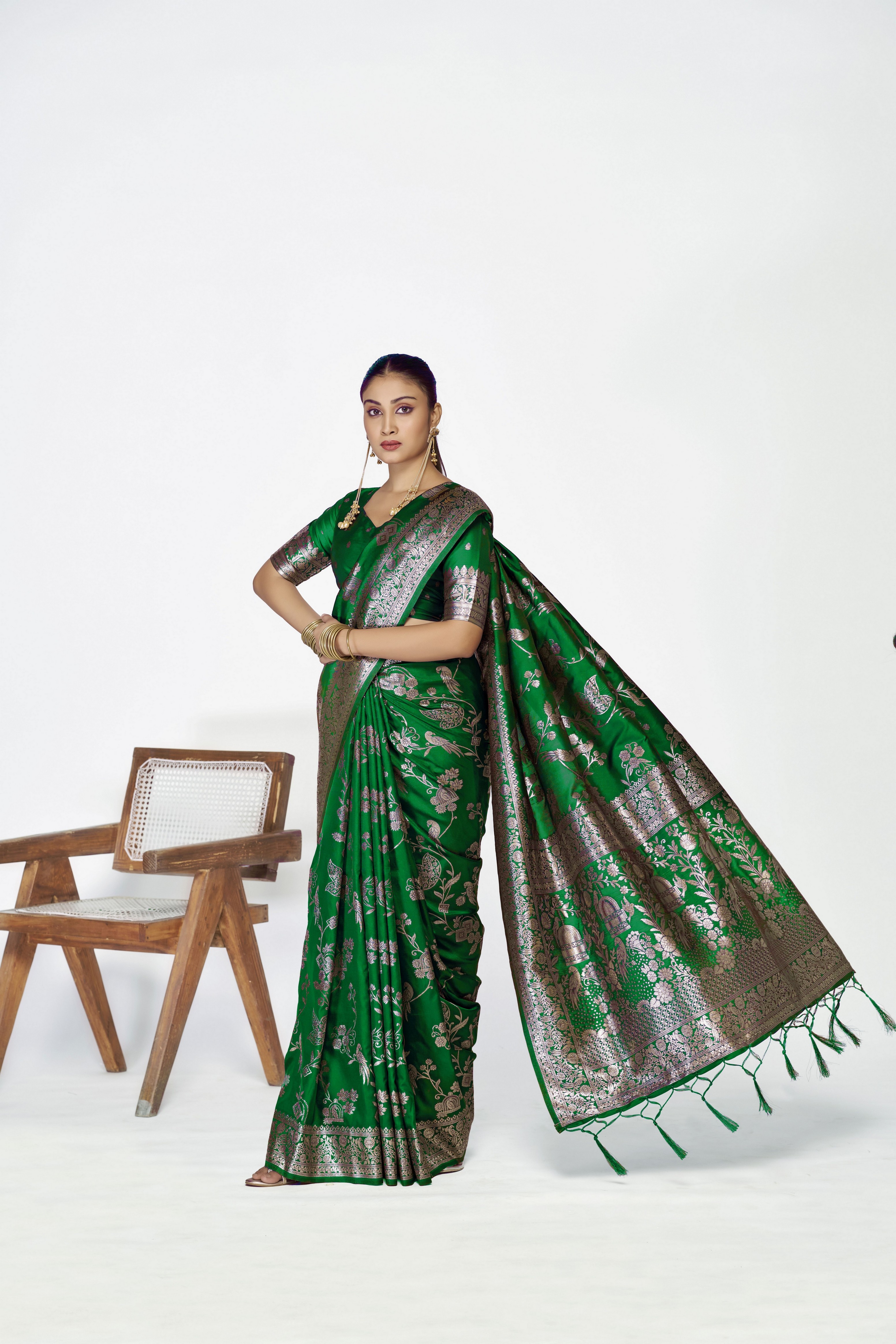 Green Color Banarasi Silk Fabric Woven Jari Designer Ceremonial Partywear Saree