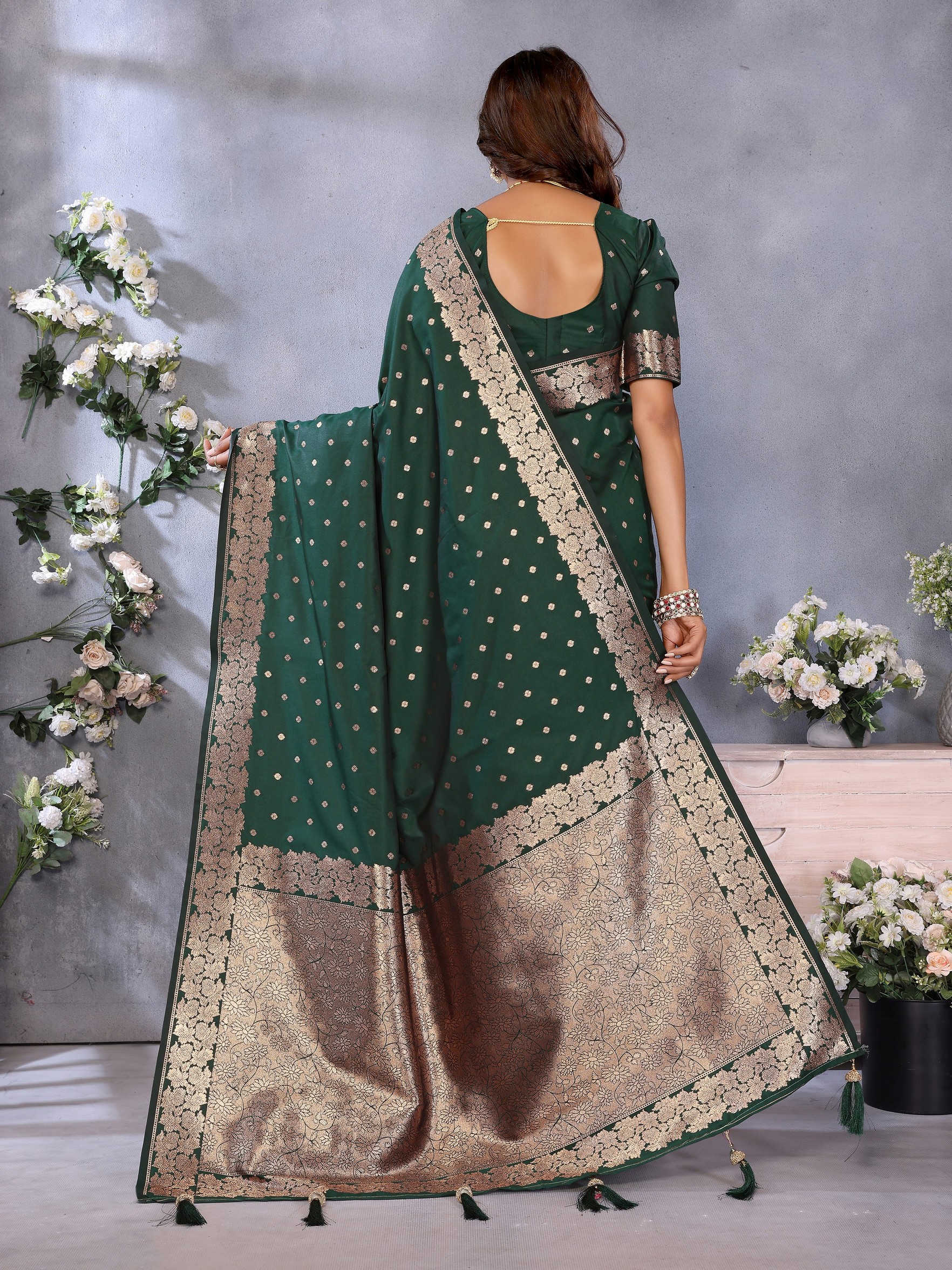 Green Color Banarasi Silk Jacquard Weving Designer Trendy Partywear Saree