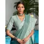 Green Color Beautiful Woven Designer Linen Fabric Graceful Saree