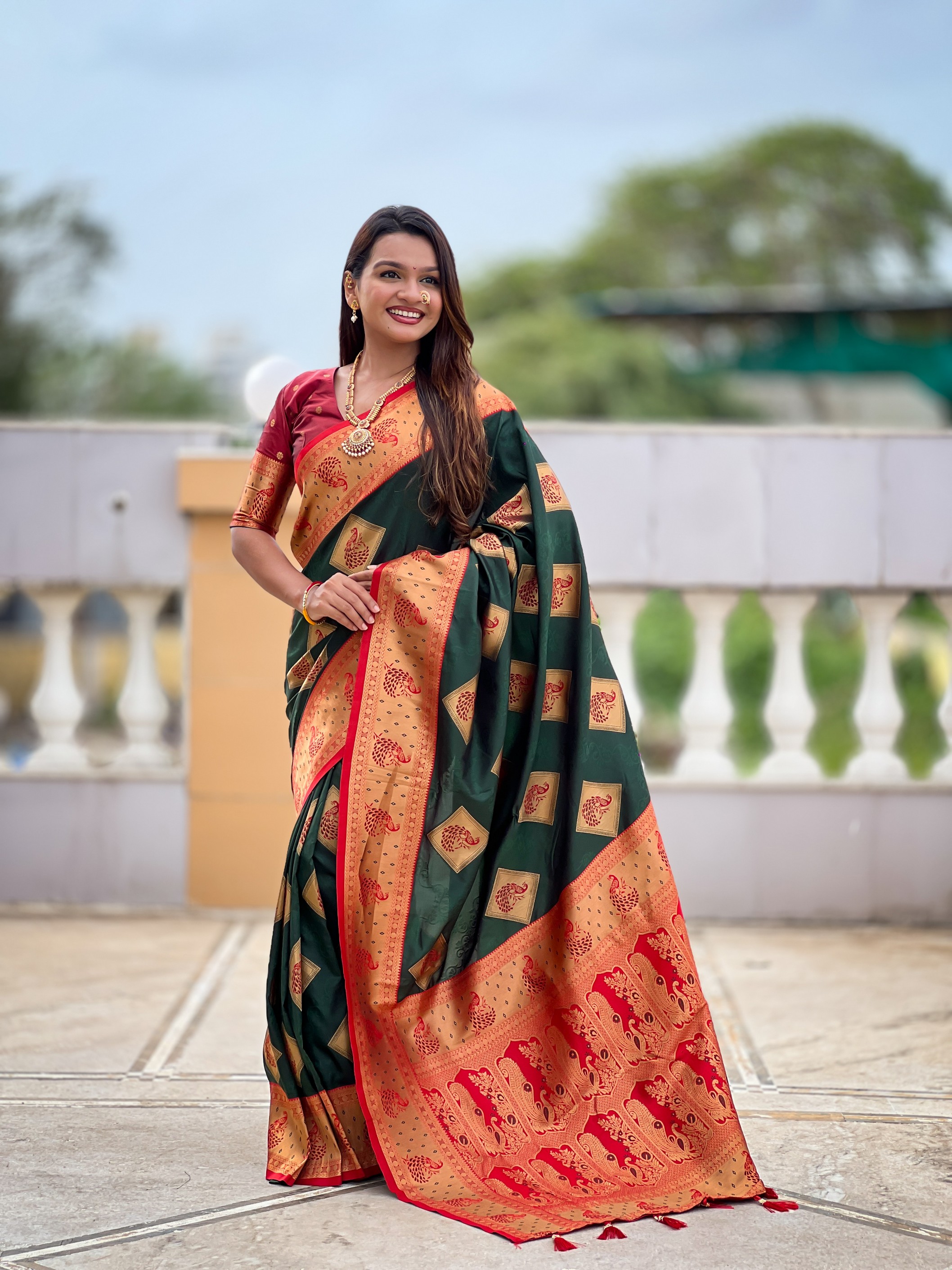 Green Color Beautiful Woven Designer Meenakari Banarasi Silk Saree