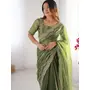 Green Color Burbery Silk Fabric Designer Embroidered Saree For Ceremonial Looks