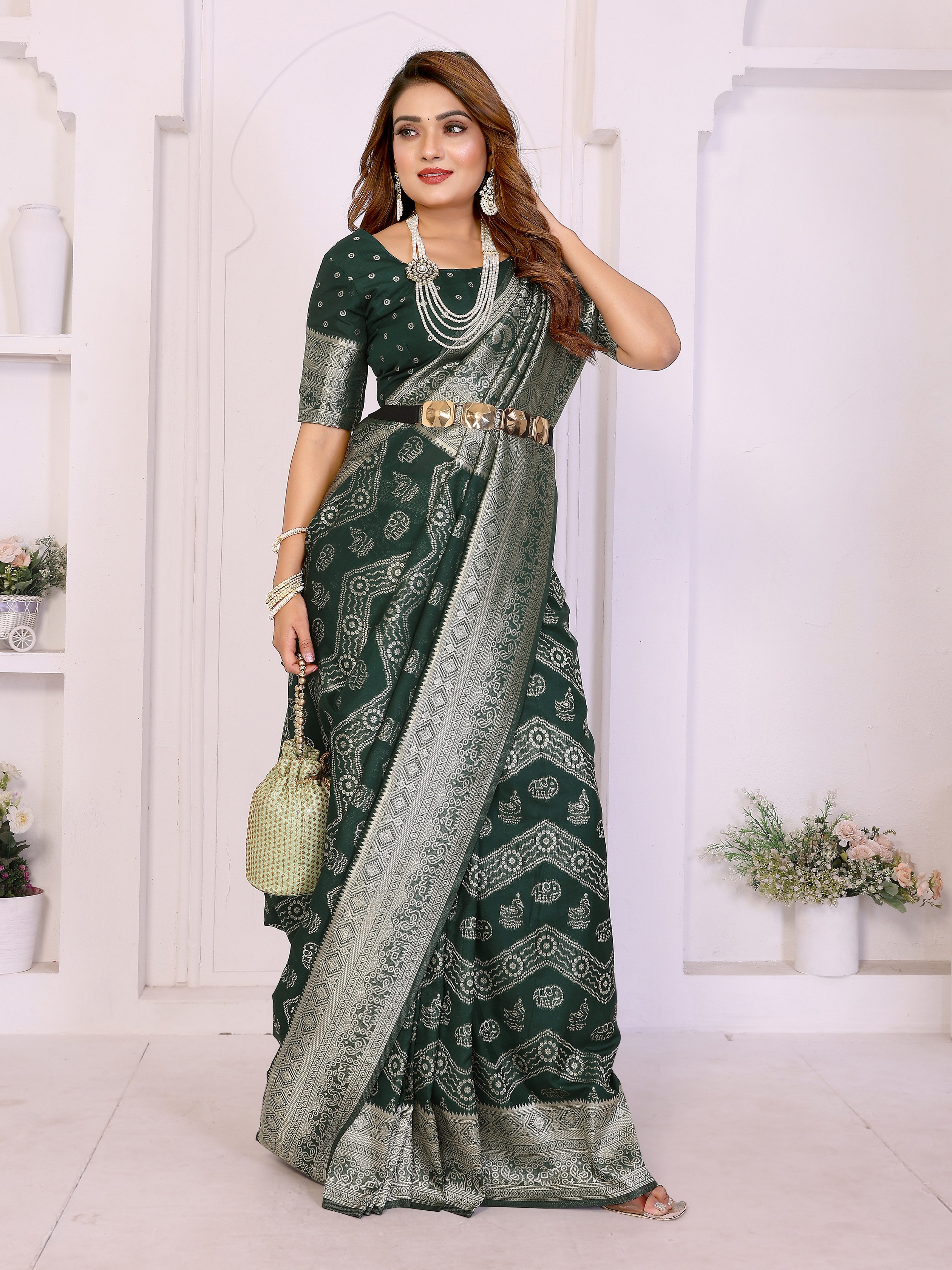 Green Color Georgette Silk Fabric Woven Laheriya Jari Designer Saree
