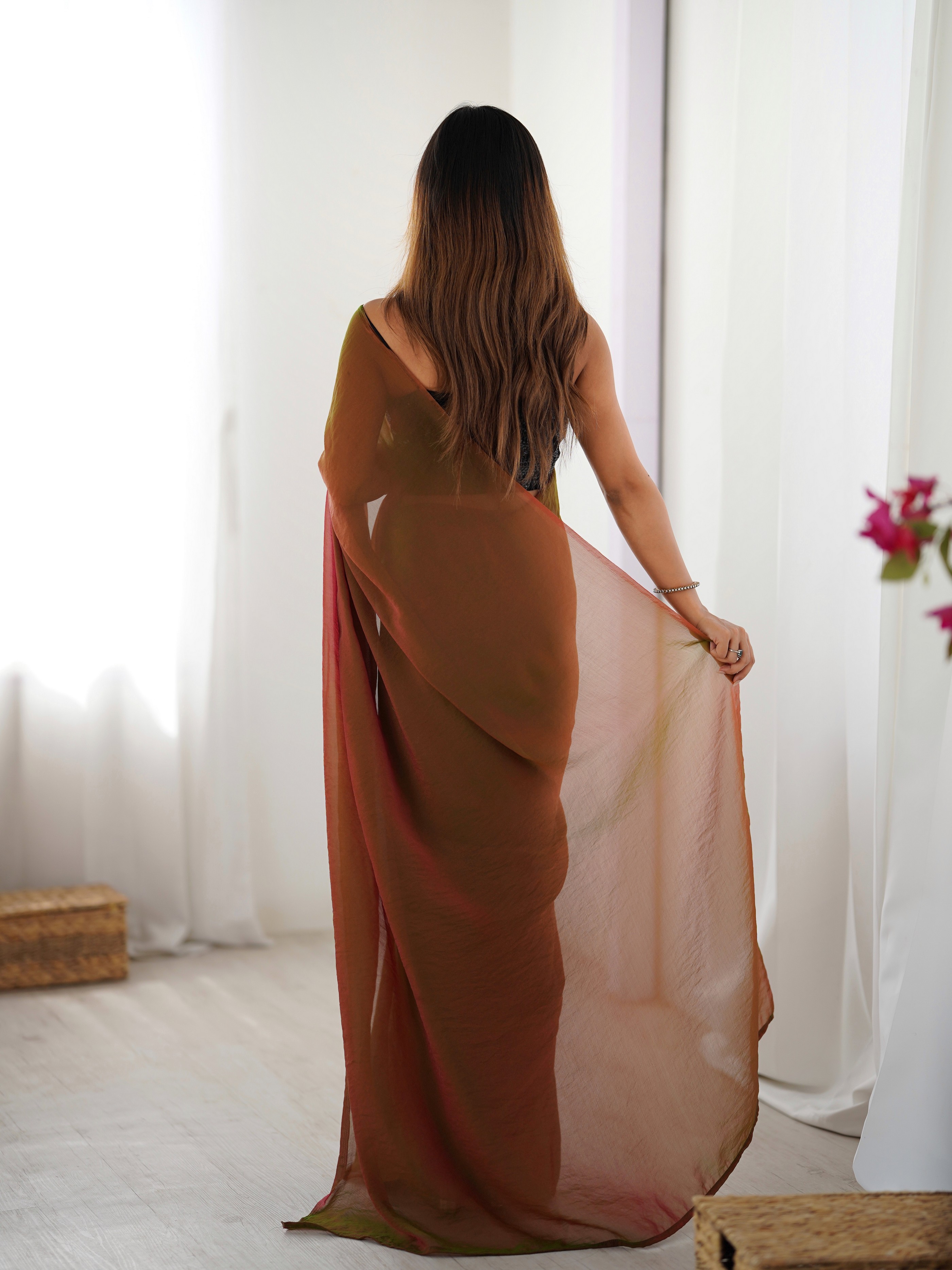 Attractive These Party Wear Ready To Wear Saree in Fine Two Tone Colored.These Saree Are Glassy Two Tone And Blouse is Georgette Fabricated.Its Beautified With Two Tone Color Solid With Sequance Embroidery Work Blouse.