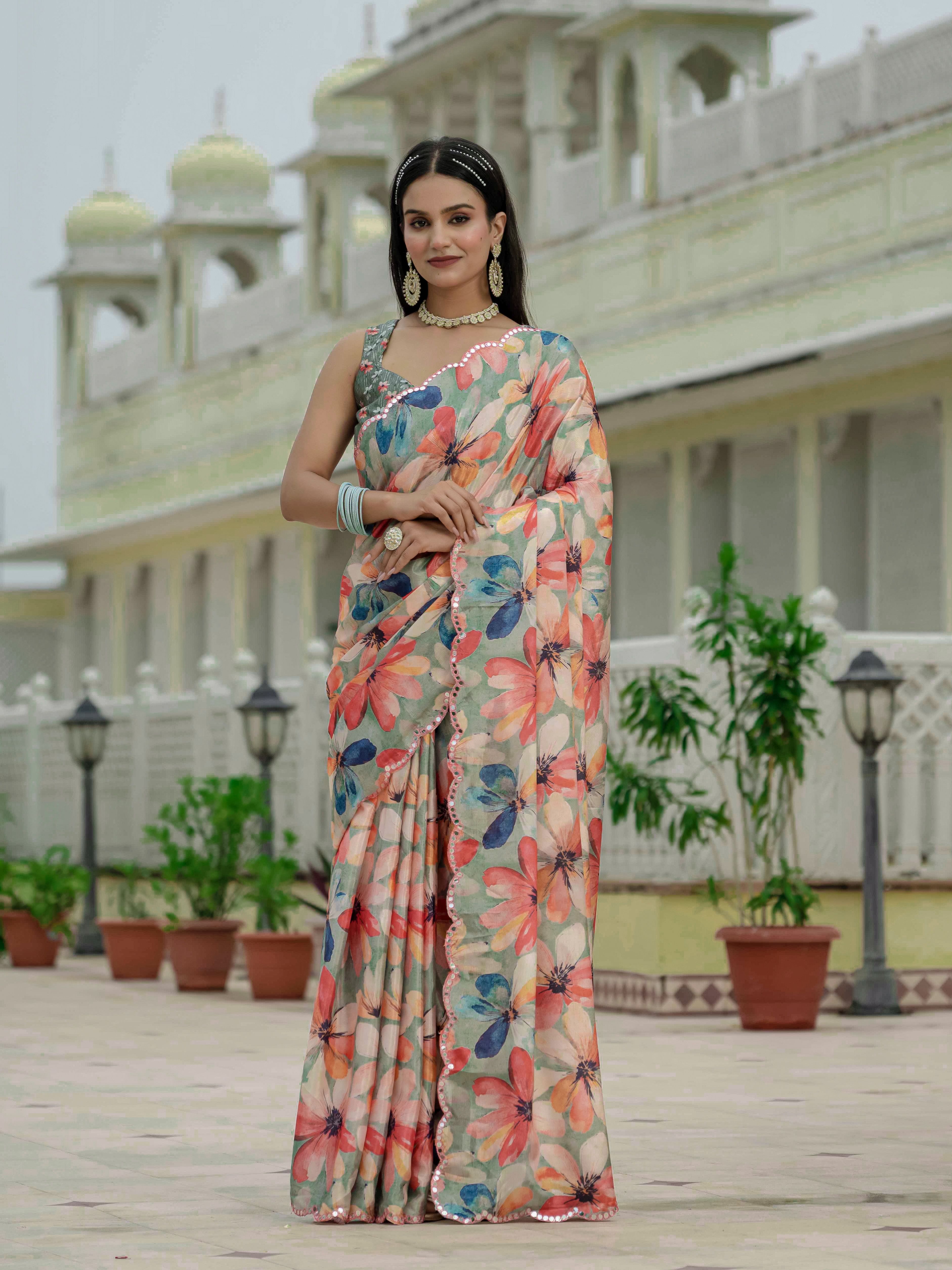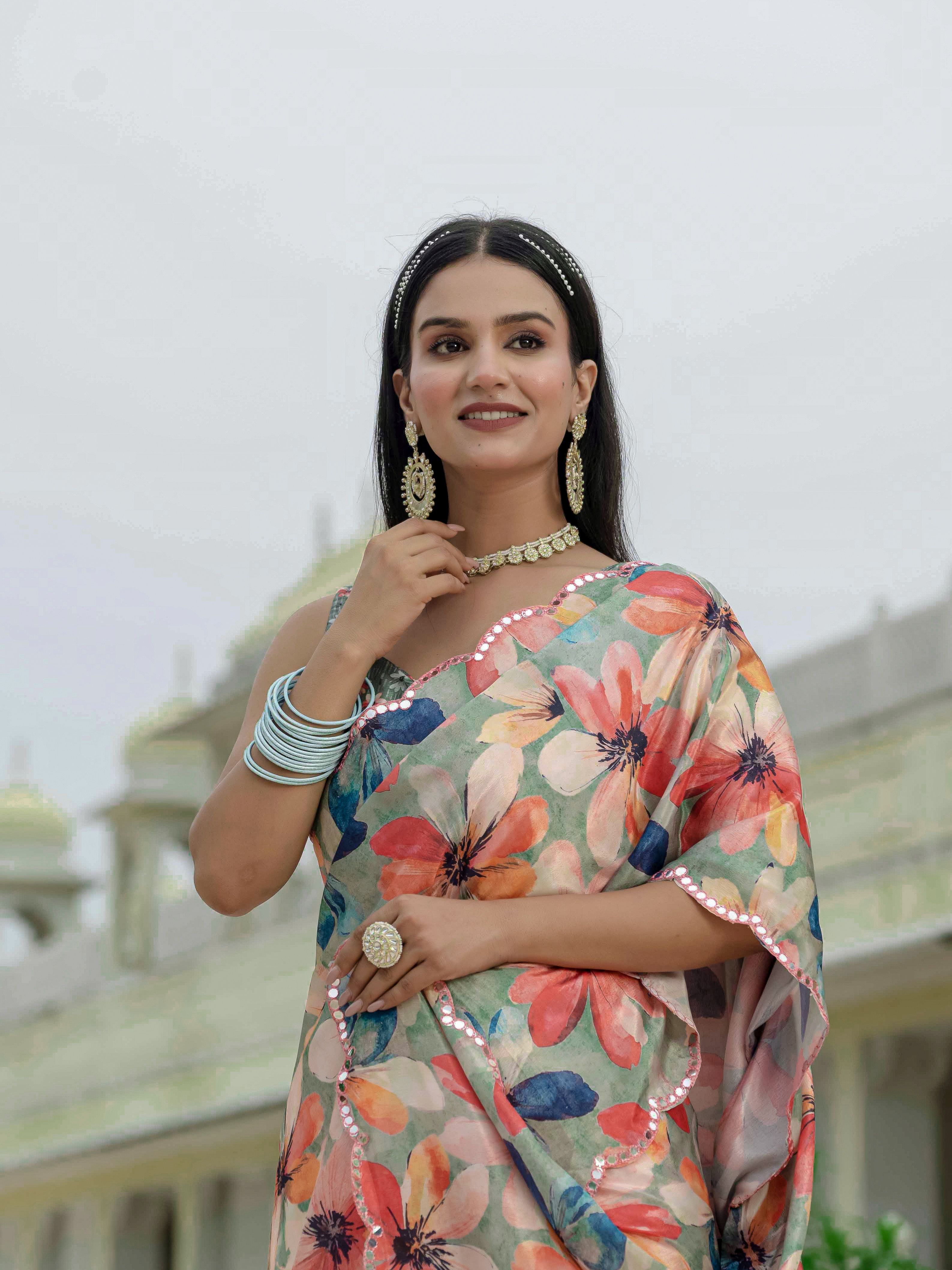 Attractive These Party Wear Ready To Wear Saree in Fine Colored.These Saree is Fabricated On Chinon Pair With Chinon Blouse.Its Beautified Designer Digital Printed With Mirror Cut Work Border.