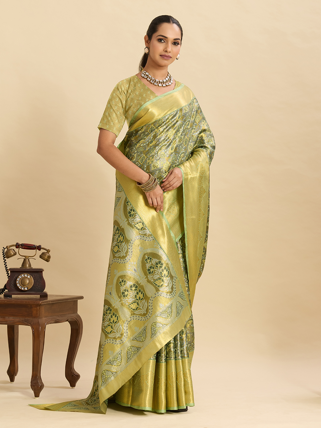 Green Color Graceful Wevon Jari Designer Silk Blended Partywear Saree